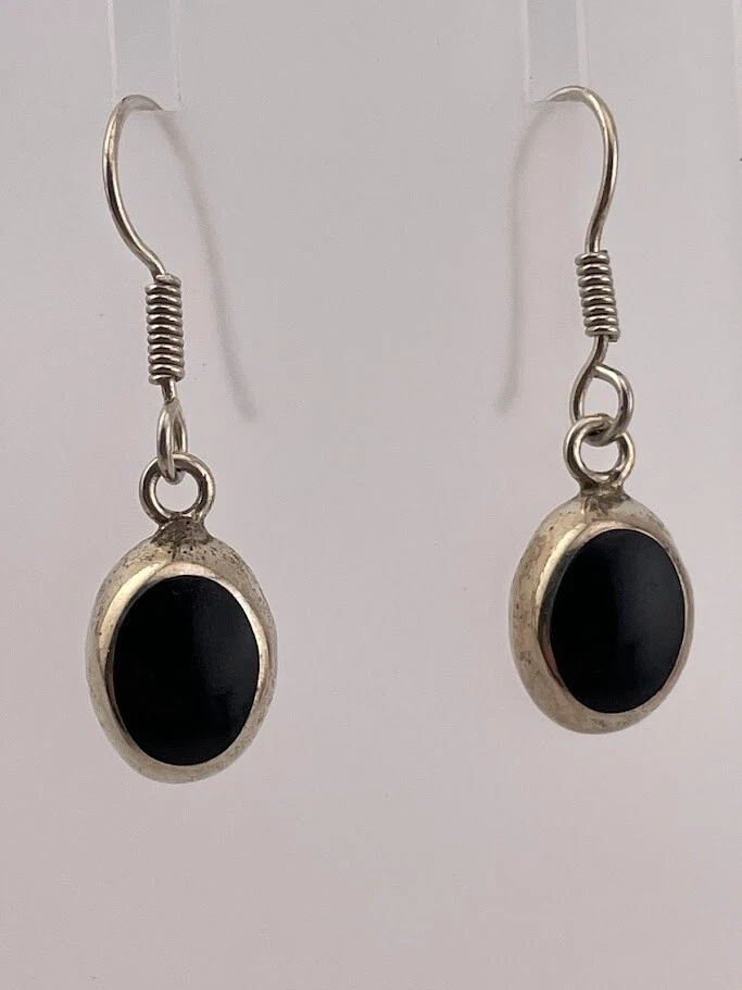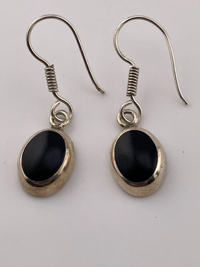 MEXICO 925 STERLING SILVER BLACK ONYX INLAY EARRINGS 1.5" SOUTHWEST CLASSIC 2664 ****************************** Thank you for your interest in our jewelry. We?d like to introduce ourselves. We are just a retired couple who love matching our customers with great jewelry. We?re not professional jewelers. To have the best shopping experience we like to recommend the following: Please measure your hand, wrist, finger or neck to ensure the best fit. We can use your measurements to help with sizing. Please ask all the questions you want. We know some stuff and, if we don?t, we?ll do the research. We like to learn too. More Stuff: If an item is described as ?gold over 925 sterling silver? this means it is gold vermeil. Vermeil is the process by which a layer of gold (usually 14k or 18k) is bonded to sterling silver. We only clean with gentle soap and warm water to avoid damage. The items we sell may be new or pre-owned and may have normal wear, slight damage, and/or tarnish. We make every effort to ensure the items we sell are as described. This includes testing to confirm metal purity if the item isn?t marked, and testing for gemstone identity. We try to put measurements in the jewelry description and include a photo of each piece with a U.S. quarter (25mm).