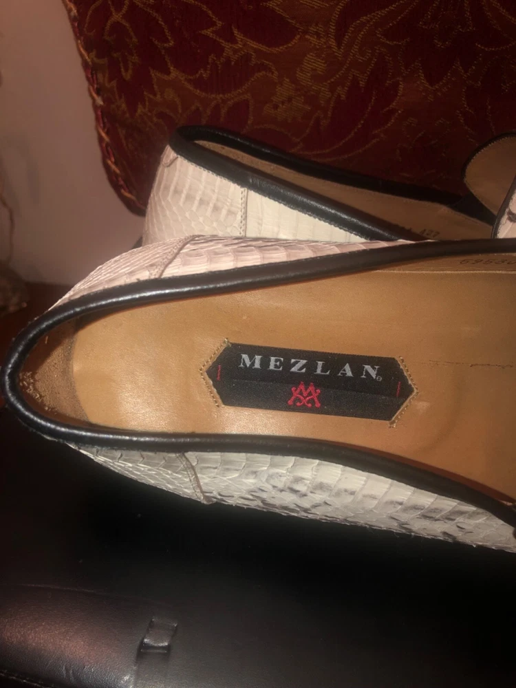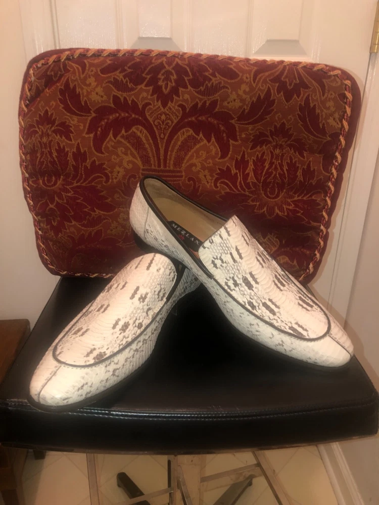 UP FOR AUCTION IS NICE CONDITION MEZLAN CUSTOM SNAKESKIN LOAFERS SIZE 13M