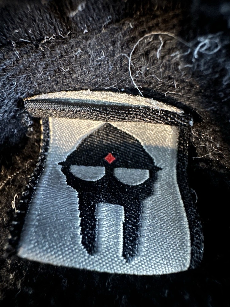 The product is a rare MF DOOM Hands Of Doom black hoodie, featuring long sleeves and a crew neck. Made by Gildan, the hoodie is machine washable and available in size L. With a regular fit and pullover style, this hoodie is perfect for the winter, fall, and spring seasons. Made in the United States, this black hoodie is a must-have for any collector or fan of MF DOOM.
