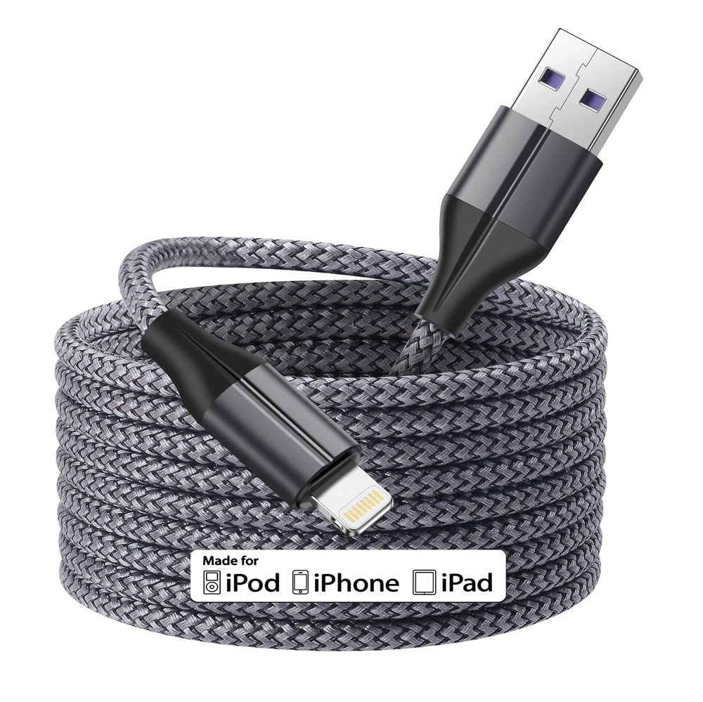 [MFi Certified] iPhone Charger 16ft, 5M/16 Foot Extra Long iPhone Charger Cable, Fast Charging Cord for Apple iPhone 11/11 Pro /11 Pro Max/XS/XS Max/XR/X/8/8 Plus/7/7 Plus/6/6 Plus/5/SE Ultra Long 15Ft Nylon Braided Charging CableSafe & ReliableSuperior construction inside and out to protect battery with stable charging current.Meets all Your Demands in daily life and Makes Your life More Convenient.Enhanced DurabilitySturdy nylon-braided fiber keep the usb cable safe and durable.Nylon Braided USB Cable is Made to last and Snugly Fits Your i-Devices with Precisely layer-Welded Connectors, More Flexible, Perfect Replacements for Your Original Cables Fast Charge & Data Sync USB Cable-The Speed of Data Transfer can Be up to 480Mbps-Charging Speed can Be up to 3Amps, Which Allows You to Charge Your Devices in a Faster WayReversible ConnectorThe Connector can Friendly let You insert the i-Device Freely Without Worrying About the Orientation.Just Insert the Connector the Right Way, Every Time! MFi Certified Lightning Cable: Each cable contains an authorization chip issued to ensure 100% compatibility with iPhone.Built with terminal and smart chip. connector with a lightning end, ensured safe charging for your devices. Enjoy fast data transfer, syncing and charging. Ultra Durable iPhone charger: Reinforced stress points with a long lifespan make iPhone cord many times more durable than anything else on the market. Remarkable iPhone Charger for Outdoor : Double shielding and tangle free design significantly enhance the interference protection to cope with any outdoor activities. The anodized connectors ensure superior functionality under heavy usage. MFi certification: Ensures complete high speed charge and sync compatibility with iPhone 11/11 Pro/X / XS / XS Max / XR / 8 / 8 Plus / 7 / 7 Plus / 6s / 6s Plu / 6 / 6 Plus / SE / 5S / 5C / 5. What You Get : iPhone cable (including 16 foot 1 Pack) with plenty long enough for many occasions, charging lightning devices in bedroom, sofa, kitchen, car and office with much less restricting on the length. Shipping from the USA All of our products are shipped from the USA, ensuring quick delivery to your destination. Payment We offer the following payment methods: PayPal, credit card, bank transfer, and eBay's secure payment system. Free Shipping & Free Returns Shipping within the USA is FREE. Additionally, any return is absolutely free for you. Risk-Free Purchase You have the option to return an item within 30 days without any justification. We cover the return shipping costs! Fast Shipping We ship immediately upon receipt of payment. Generally, the package is delivered within 2-3 days in the USA. If it takes longer, we will contact you. Quality and Costs Made in Europe, USA, China No customs fees or additional charges Total satisfaction guarantee Invoice with declared VAT available upon request in .pdf format Feedback Your feedback is very important to us. After you pay for your purchase, you will automatically receive positive feedback from us.