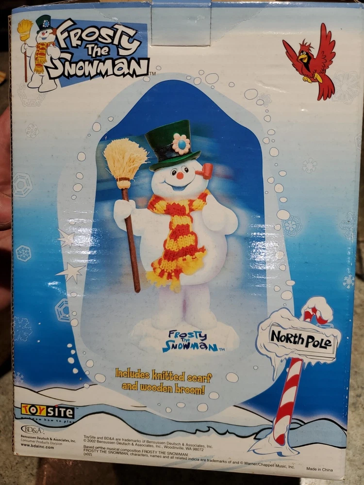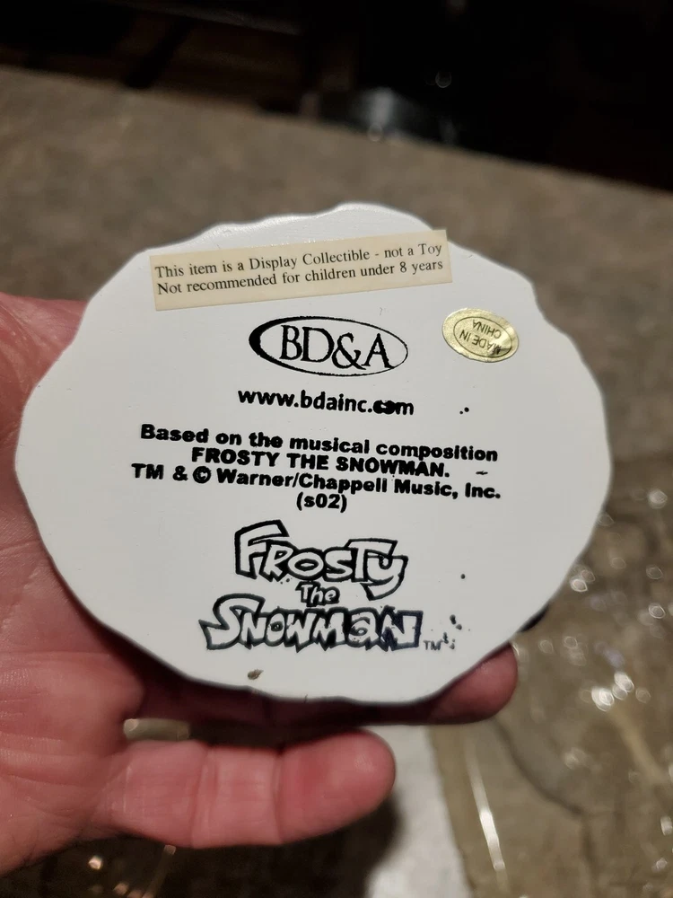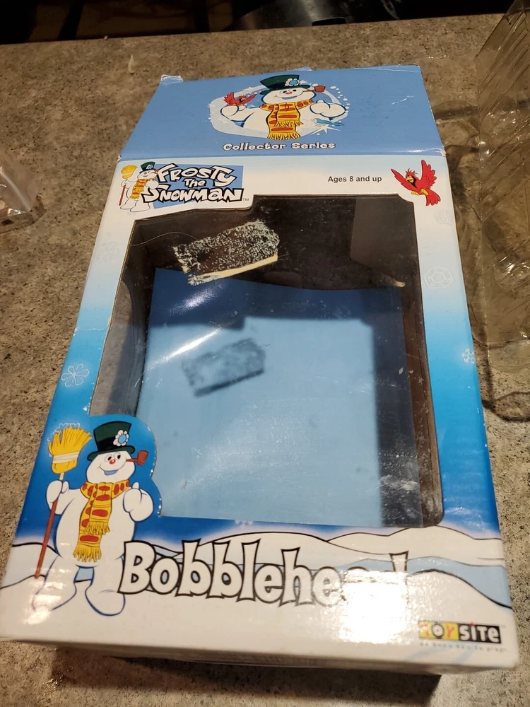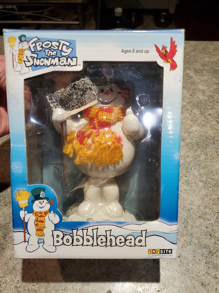 Brand:ToySiteVintage:YesCountry/Region of Manufacture:ChinaTheme:Movie, Television CharactersTime Period Manufactured:Modern (1970-Now)Character:Frosty the SnowmanYear:2002Movie:Frosty the SnowmanRelease Year:2002Type:Bobblehead