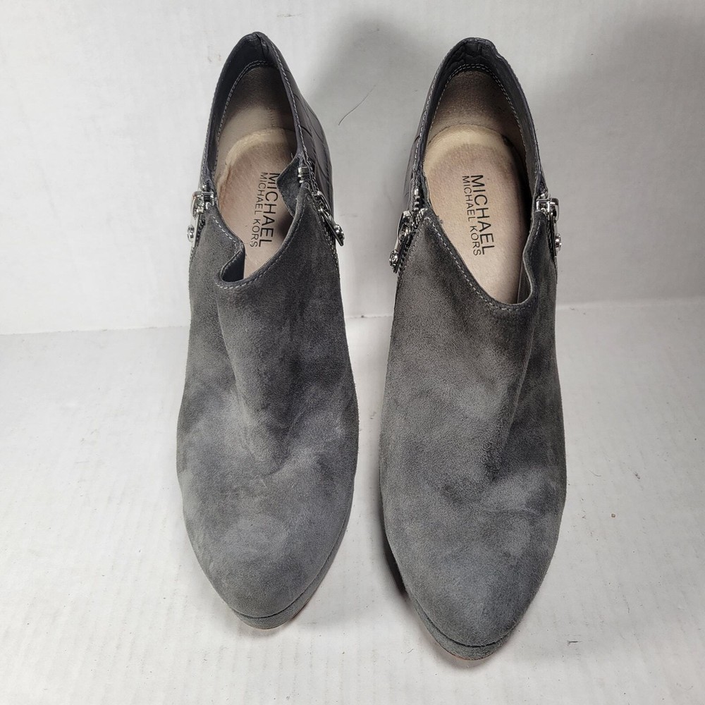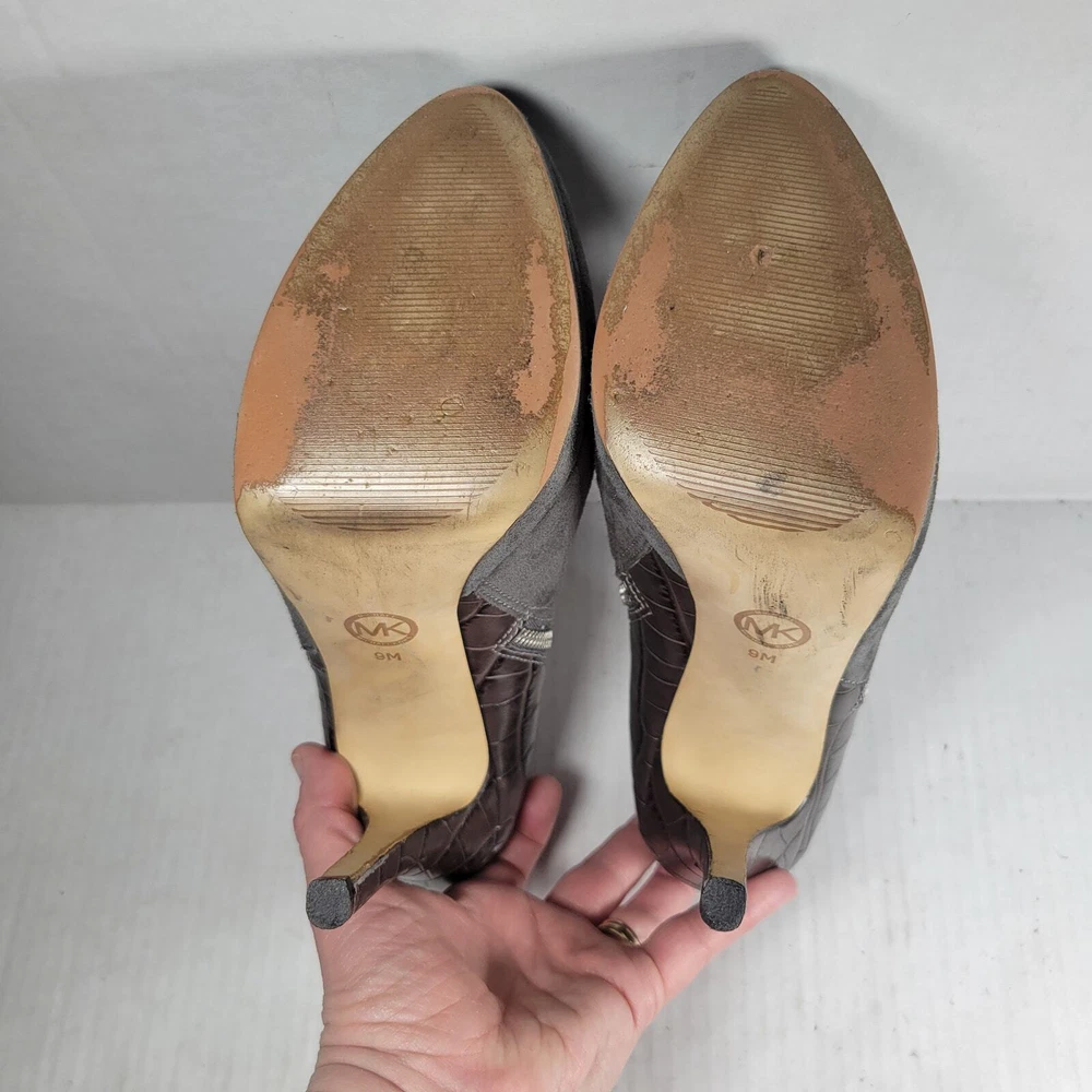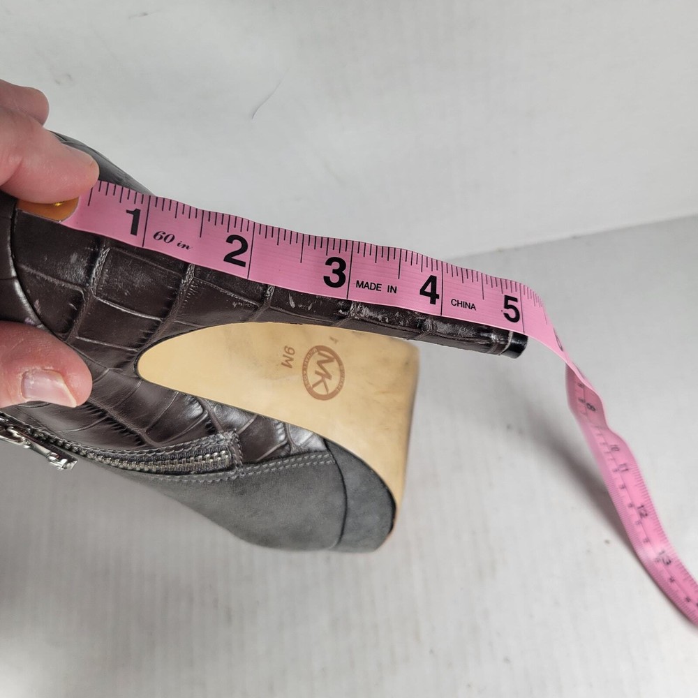 Brand:MICHAEL Michael KorsClosure:ZipDepartment:WomenUpper Material:LeatherTheme:SnakeStyle:PumpSeller Notes:“Pre-owned in EUC. See photos for details.”Color:GrayUS Shoe Size:9Type:Heel