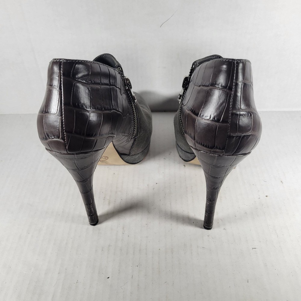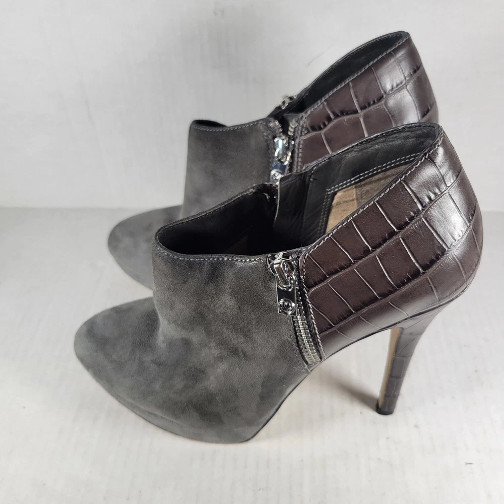 HomeMICHAEL KORS Womens Gray Snake Print Leather Booties with 5 Inch Heel Size 9M