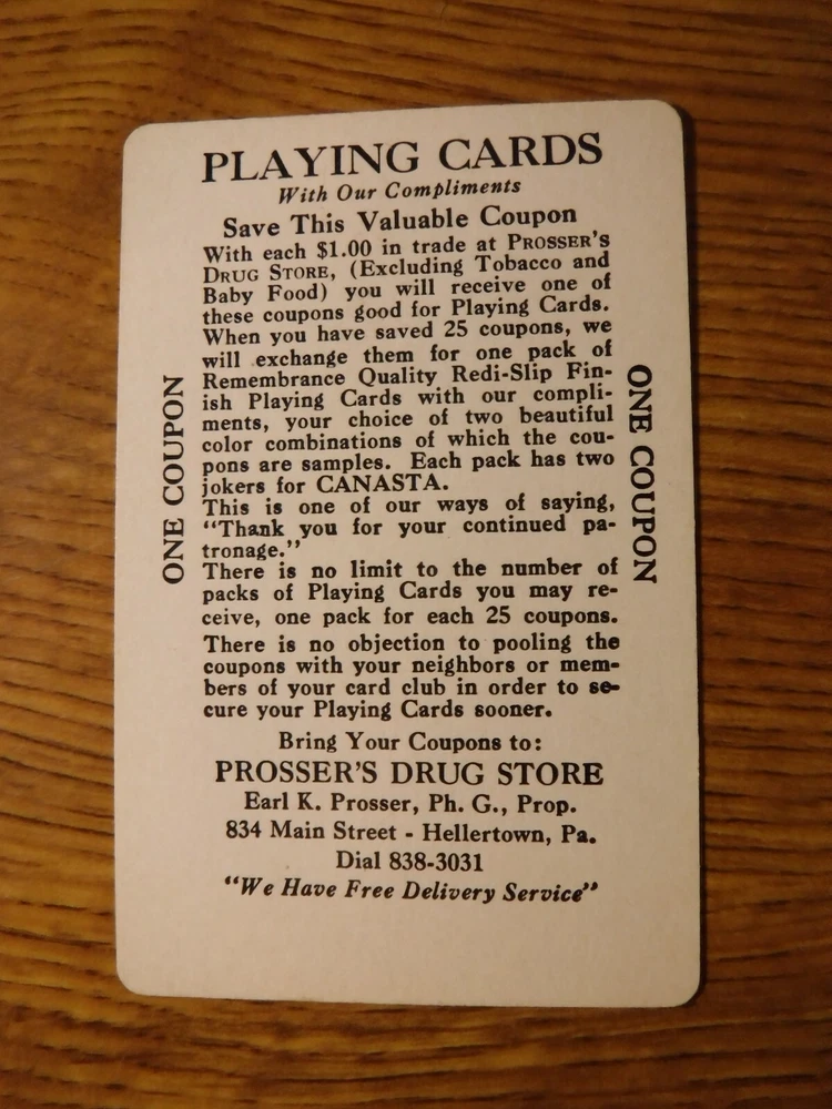 PLEASE READ THIS ENTIRE AUCTION: This auction is for the playing card swap coupon you see in the pictures. These cards are in near mint to mint condition. The shipping and handling in first class mail to any address in the United States is $.99 for the first card and $.29 for each additional card. International bidders: The shipping and handling for this item in first class mail with no tracking is $1.79 for the first card and $.29 for each additional card. Please check my feedback and bid with confidence.