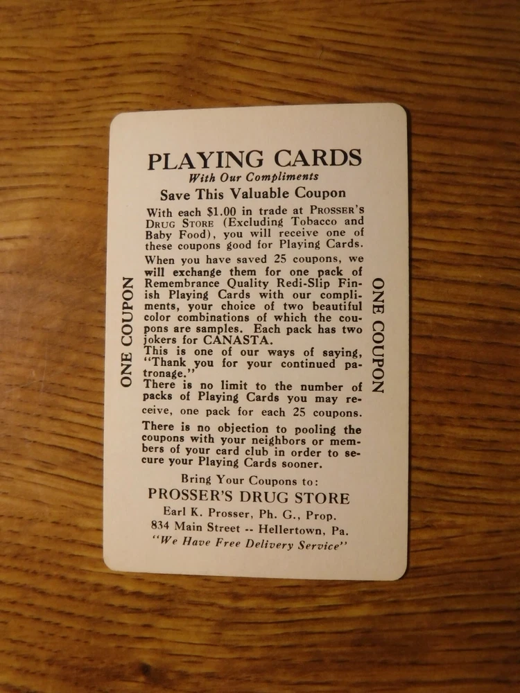 PLEASE READ THIS ENTIRE AUCTION: This auction is for the playing card swap coupon you see in the pictures. These cards are in near mint to mint condition. The shipping and handling in first class mail to any address in the United States is $.99 for the first card and $.29 for each additional card. International bidders: The shipping and handling for this item in first class mail with no tracking is $1.79 for the first card and $.29 for each additional card. Please check my feedback and bid with confidence.