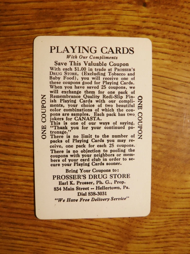 PLEASE READ THIS ENTIRE AUCTION: This auction is for the playing card swap coupon you see in the pictures. These cards are in near mint to mint condition. The shipping and handling in first class mail to any address in the United States is $.99 for the first card and $.29 for each additional card. International bidders: The shipping and handling for this item in first class mail with no tracking is $1.79 for the first card and $.29 for each additional card. I accept Paypal. Please check my feedback and bid with confidence.