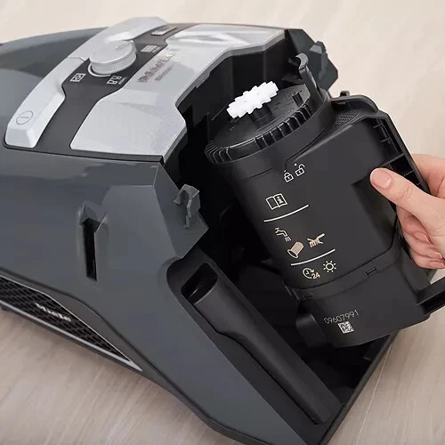 Product Features Powerful but quiet German-engineered Miele bagless canister vacuum Deep clean with Vortex Technology; 4 suction power settings Maintenance-free HEPA Lifetime Filter and Gore CleanStream Fine Dust Filter Accessories include SBD 285-3 Pure Suction Combination Floorhead, SBB 300-3 Parquet Twister Floorhead, Dusting Brush, Upholstery Tool, Crevice Tool Dimensions: 12.5"L x 11"W x 20"H Acrylonitrile butadiene styrene Made in Germany