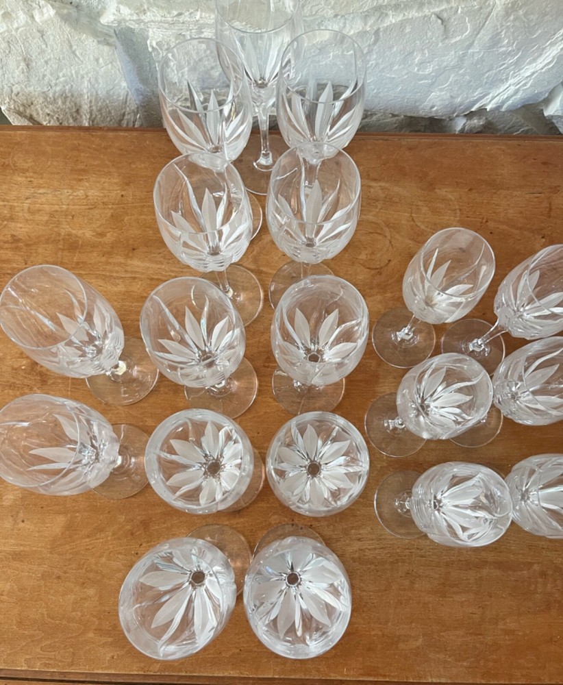 Flame D'Amore glasses from Mikasa. Gorgeous crystal with frosted flames. All are in excellent condition. There are two Iced Tea, 11 water, and 6 wine glasses available. Purchased individually, but packaged together to save on shipping. They will be bubble wrapped and double boxed to help ensure a safe arrival. Sometimes the ebay shipping calculator doesn't properly combine weights for shipping cost-if you buy several and the price seems high, just reach out and I can either send a new invoice or refund shipping overcharges.