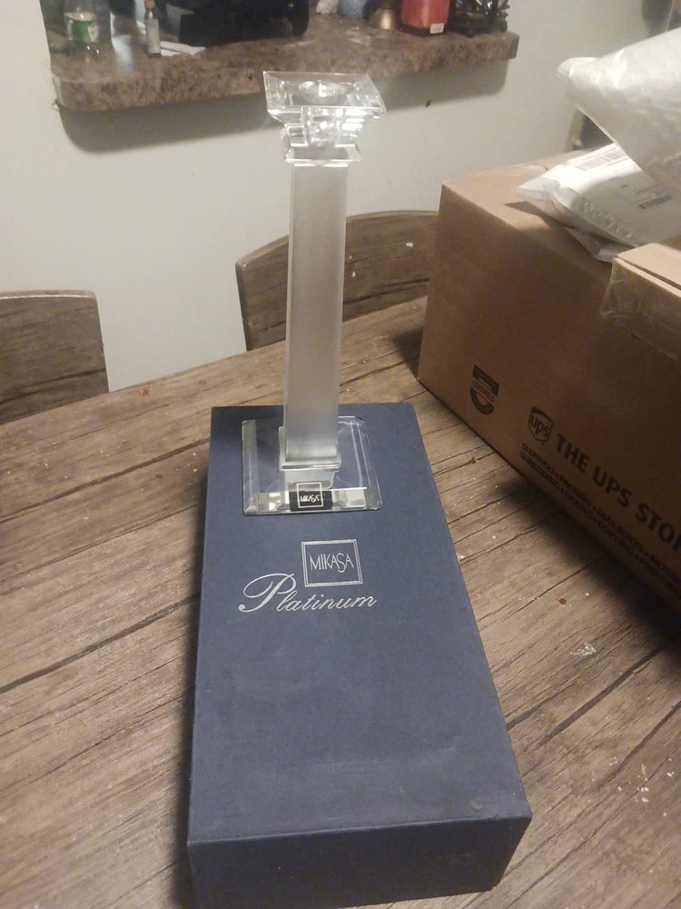 Backstamp: LASERED Features: Decorative Subject: candle UPC: Does not apply Original/Reproduction: ORIGINAL Production Style: Elegant Glass Era: 21st Century (2000-Now) Suitable For: Taper/Dinner Candle Model: OBALESQUE Style: Modern Finish: Glossy Manufacturer: Mikasa Signed: Yes Additional Parts Required: No Material: Crystal, Glass Glassmaking Technique: Etched Object Type: Candle Holder Type: Candle Holder Custom Bundle: No Handmade: Yes Brand: Mikasa Antique: No Original/Licensed Reproduction: Original Color: Clear Product Line: Mikasa Pattern: OBALESQUE Type of Glass: Crystal gtin13: Does not apply Signed By: n/a, MANUFACTURER Theme: Decorative Item Height: 10" MPN: N/A Country/Region of Manufacture: Slovenia Vintage: No Room: Any Room