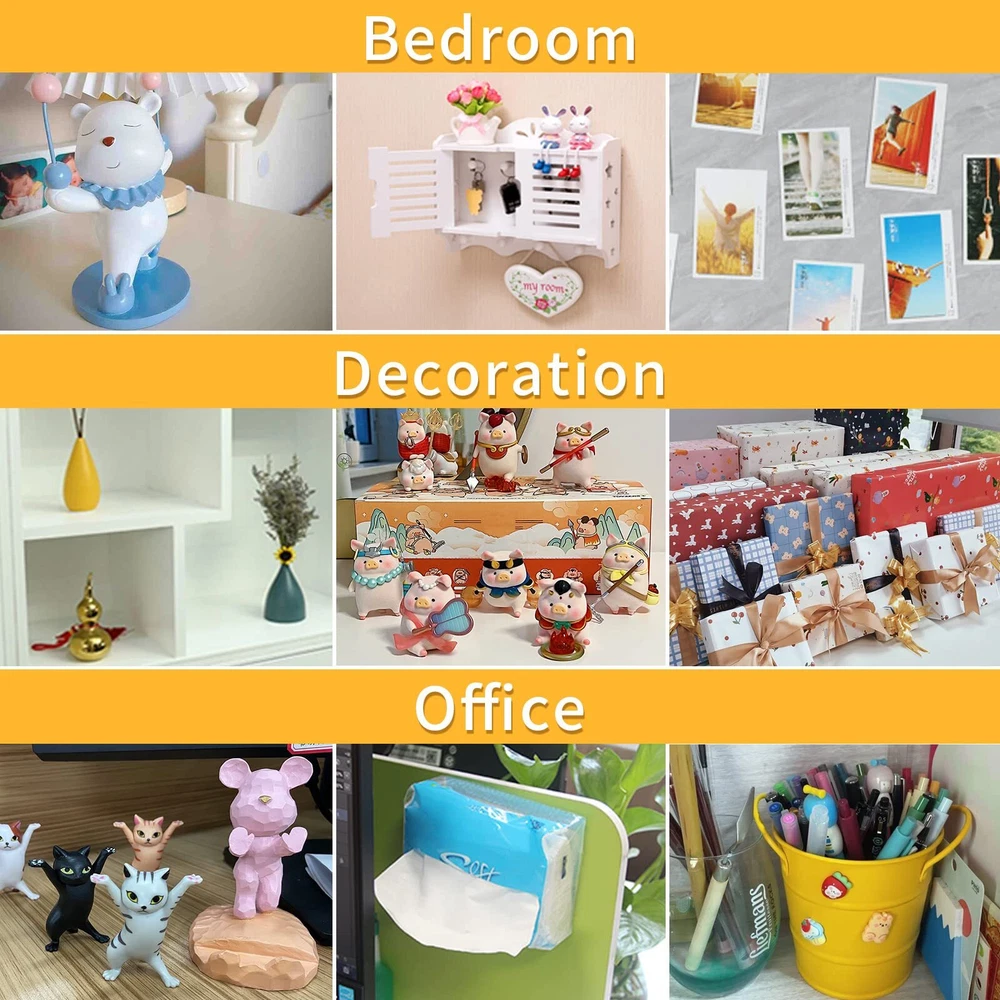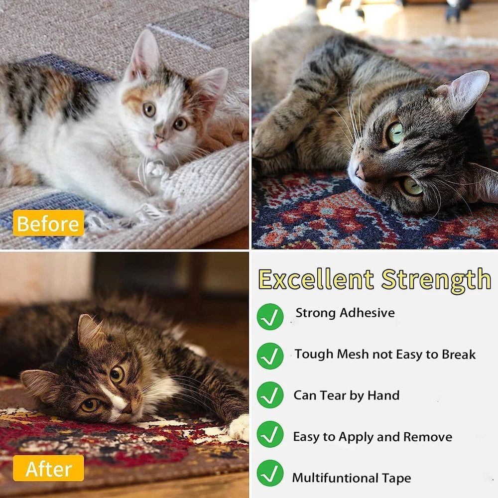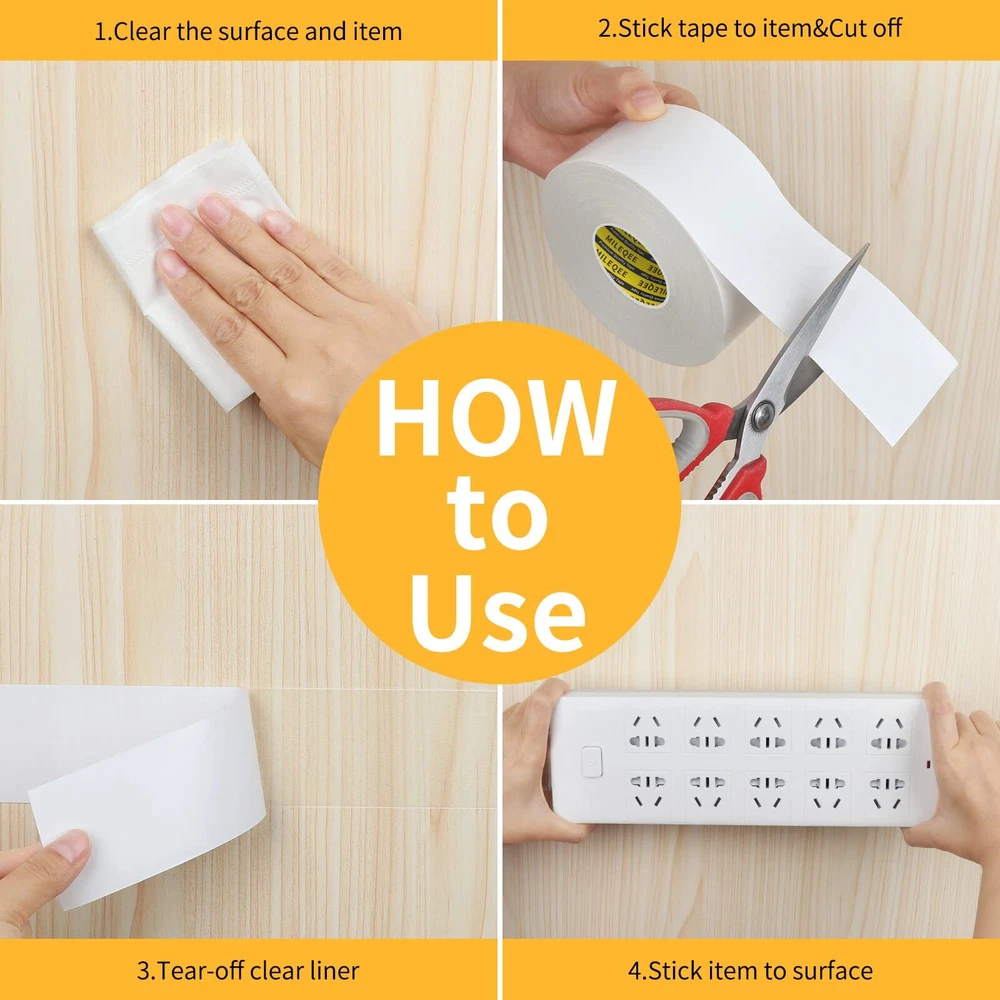Tape High Tack Multipurpose Removable Clear & Tough Mounting Tape Sticky Adhesive easy to peel Double-sided adhesive tape designed to resist curling, making your installation process fast and simple, soft and comfortable, easy to peel, very flexible strong adhesion The adhesive tape has strong adhesion,uitable for indoor and outdoor use Perfect for installing frames , photos, posters and shelves, , binding carpets, decorations Using Tips Please do not hang or paste mirrors, glass frames, glass products, knives and other valuables or dangerous and fragile articles Please do not hang articles on the seat or on the head of the bed, so as to avoid danger due to improper use The product cannot be used in the environment where there is direct contact with water, Do not use this product in oily and wet places Do not apply to uneven, rough or porous surface, such as latex paint surface with fine pores or cracks, plastic wallpaper, soil wall, ash wall, cement wall, sand wall Some latex paint walls will fall off over time Please carefully check whether they are firm and firm before use This product cannot be used on newly painted walls Specs Quantity 1Rolls Length 66FT/20m Width 2/50mm PROFESSIONAL DOUBLE SIDED TAPE- The double sided mounting tape is made of upgraded PE material and extra strength cloth mesh, coated with extremely sticky clear glue under industrial standard, providing premium grade quality and easy use for home, office, school etc. HIGH STICKY DOUBLE TAPE HEAVY DUTY- Strong grid cloth and high stickiness makes double sided tape heavy duty and tough,ensuring good performance whether applying to rough or smooth surfaces, heavy or light items, works well as carpet double tape, rug tape, woodworking double sided tape or adhering warming blankets on garage refrigerator, use for crafts,carpet repair,electronics repair etc. EASY TEAR TAPE,EASY TO USE- Easy tape double sided is tearable by hand and easy removable.Before applying 2 sided tape heavy duty, make sure surface is clean and dry,then rip or cut double sided tape strips into desired length, then apply thin double sided adhesive tape onto the surface,peel off yellow paper backing(release liner),put items to double tape resistant and press firmly. RESIDUE FREE, EASY TO CLEAN- Double sided mesh tape coats high adhesion glue to strong fiber grid, leaves no annoying glue or residue when taking it off. The adhesive will not peel back up, causes no trouble in cleaning. Strong double sided tape keeps carpets or other objects firmly held in place. If you need to pull up clear carpet tape to reposition it or clean up, removable rug tape is very easy to be taken off. MULTIPURPOSE DOUBLE SIDED TAPE- Two sided tape heavy duty is applicable to home accessories like carpets, area rugs, runners, fridge, photo frames, nameplates, sofa cushions, doormats, car mats, poster, DIY projects and so much more. Double stick tape is suitable for various surfaces like hardwood, tile,glass, plastic, concrete etc.
