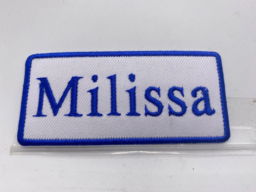 THIS AUCTION IS FOR A NEW EMBROIDERED IRON/SEW ON NAME PATCHES) ( SIZE 1-1/2 INCHES TALL AND 3-1/2 INCHES WIDE) MILISSA (BORDER AND NAME EMBROIDERED ) (AVAILABLE IN BLUE ON WHITE AND RED ON WHITE AND WHITE ON RED) (NEW) SHIPPING FOR THIS ITEM WILL BE (FREEEE IN THE U.S.A.) PLEASE PAY THROUGH EBAY. ITEMS WILL BE SHIPPED 1 BUSINESS DAY AFTER RECEIVING PAYMENT. THANK YOU FOR LOOKING! ! CLICK HERE TO Save as Favorite Seller Most items will be shipping in a regular letter envelope and will NOT have a tracking number. All items will be shipped the next day, if you pay before 10:00am pacific time your package will ship same day. If you pay on Saturday you package will ship on Monday unless it is a holiday it will ship on Tuesday. I ship 6 days a week. by 10:00am pacific time. INTERNATIONAL BIDDERS SHIPPING FOR THIS ITEM WILL BE $3.00 FOR THE FIRST PATCH OR SET AND .25 FOR EACH ADDITIONAL PATCH. THANK YOU FOR WATCHING <div style="text-align:center"><a style="text-decoration:none" href="http://mostpopular.sellathon.com/?id=AC583636"><img src="http://www.sellathon.com/Resources/Images/countercredit.gif" border="0"></a></div>