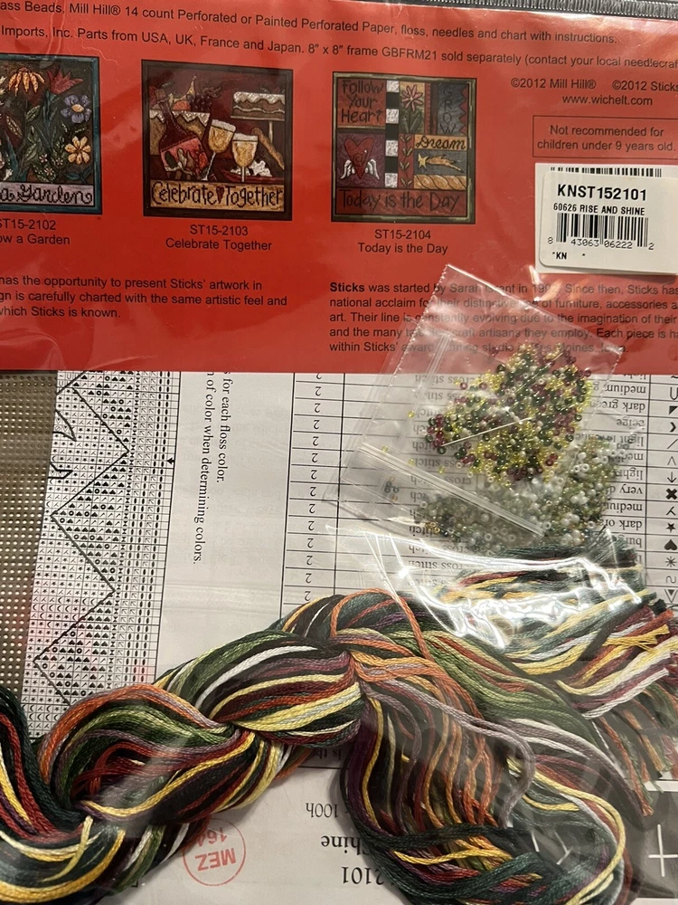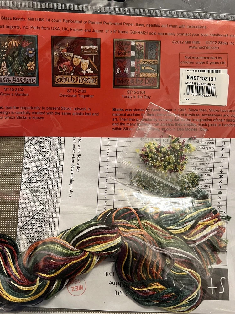 Theme: Rise & Shine Rooster Type: Counted Cross Stitch Kit Bundled Items: Beads Brand: Mill Hill Style: Button & Beads Kit Format: Framed Picture Model: Rise And Shine