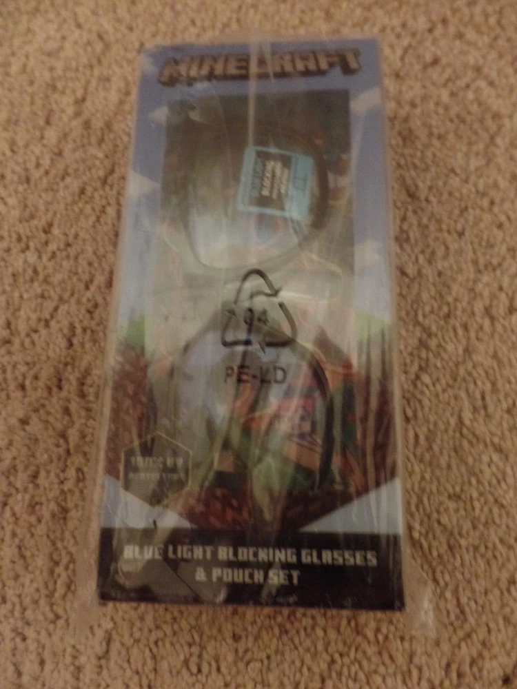 MINECRAFT UV and Blue Light Blocking Gaming Computer Eye Glasses with Pouch - NEW in Box 100% UV, Blue Light Blocking Glasses and Pouch Set Reduces Digital Eye Strain New in original packaging. Never Opened or Used.. Fair Pricing and Shipping No International Sales. Thanks for Looking