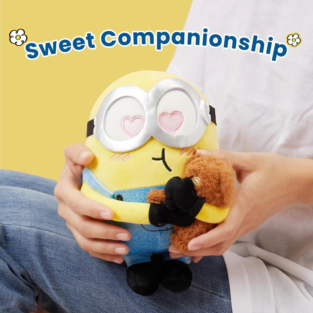 MINISO 8" Minions Stuffed Animals Plush Toys, Cute Sleeping Bedding Stuffed Animals Kawaii Plushies Pillow for Kids (Bob+Tim) Product Details Product Dimensions: 7.48 x 4.72 x 9.84 inches Item Weight: 10.2 ounces Item model number: Plush Toy Manufacturer recommended age: 0 - 18 years Manufacturer: MINISO Adorable Minions Plush Toy: Bring home the delightful MINISO 8'' Minions Stuffed Animal featuring Bob hugging his beloved Tim bear. This charming plush toy is perfect for Minions fans and adds a touch of cuteness to any collection. Soft and Snuggly: Made with ultra-soft, high-quality materials, this plush toy is designed for maximum comfort and cuddliness. Ideal for bedtime, it serves as a cozy sleeping companion for kids and toddlers, ensuring a restful night's sleep. Perfect for Kids: Suitable for both boys and girls, this Minions plushie is an excellent gift for children of all ages. Whether for a birthday, holiday, or just because, it’s sure to bring joy and smiles to any young Minions fan. Versatile and Cute Decor: Beyond being a delightful toy, this plushie also makes a charming addition to your child's bedroom or playroom decor. Place it on the bed, a shelf, or in a cozy corner to add a touch of kawaii charm to any space. Durable and Easy to Clean: Crafted with durability in mind, this plush toy is built to withstand countless hugs and playtime adventures. Plus, it’s easy to clean, making it a practical choice for busy parents and active kids.