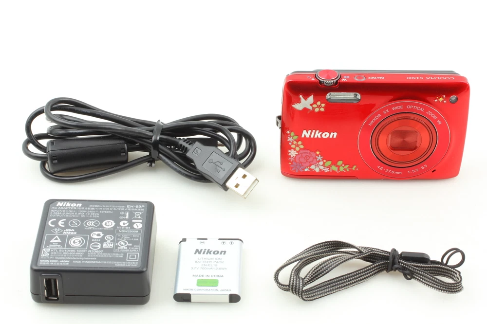 [MINT] Nikon Coolpix S4300 Red Digital Camera From JAPAN Description Total Condition; MINT Serial Number; 22004872 Appearance; Appearance is beautiful. There are stickers of flowers and bird on the exterior. It shows minimal signs of use. *Please check photos. Optics; -Lens: Beautiful condition. There is no fog. There is no fungus. There is no balsam separation. There are no scratches. There are a few tiny dusts. No problem in the shooting. Functional; It works properly. Bundled Items; All you can see on the picture will be included in a set of a package. Above condition is based on my own opinion. Please check the photo carefully. Please feel free to contact me for any questions! Thank you. Shipping I send a product by FedEx or DHL or JP Post . I attach the tracking number. Please bid it without worrying. Shipping is available from Monday to Friday. Weekends are not available because office is closed. Returns Unconditional Return Policy Customer service and satisfaction are very important to us. I have an unconditional return policy if notified within 30 days of the receipt of the item. All returned items must be the original condition. All return requests must be made within 30 days of the receipt of the item. Please contact me first for return before you ship it back to me. The postage of the returned goods is a seller burden. International Buyers Please Note: Import duties, taxes, and charges are not included in the item price or shipping cost. These charges are the buyer's responsibility. Please check with your country's customs office to determine what these additional costs will be prior to bidding or buying.