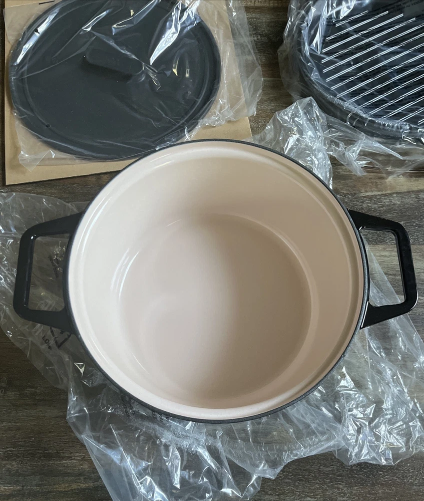 Misen 7 QT Enameled Cast Iron Dutch Oven - Chip-Resistant Enamel Coating - Thick Iron Core For Heat Retention - Large Cooking Surface - Oven Safe, Induction Compatible - Grill and Silicone Lid, Black