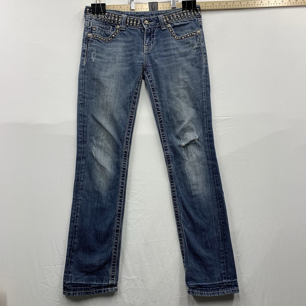 MISS ME Women's JP5130ST Blue Denim Heavy Studded Rhinestone Waist Jeans 28 Jeans have tears, snags and holes on both legs and a pink stain from someone writing initials on the inside which has bled through. Please see photos. We are passing our shipping discount on to you. Thank you for Looking! We hope you will check out our other items as you never know what we may find. Our shipping might be a little more than others at times but that is because we pack things to withstand the worst that can happen to them. When you get your order in one piece and see the way it is packaged, we hope you will see why our cost to ship is higher at times than others. Materials to protect your order add weight and size to the package. We are continually looking for ways to reduce costs for you, but we will not reduce what we feel is the appropriate protection for your order. You will never get an order from us that is just tossed in a box free to move inside the box. Every order is packaged with its probably getting thrown or dropped at some point on its way to you in mind.