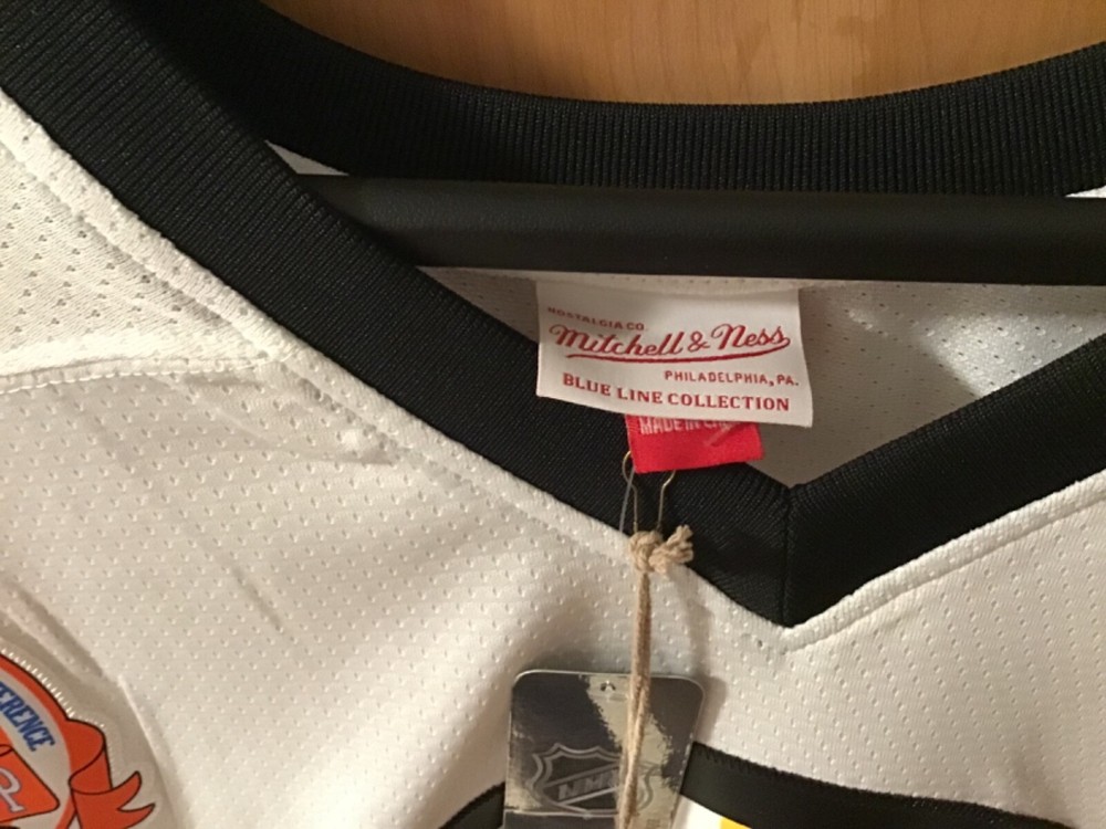 Show your love for the Boston Bruins with this officially licensed Mitchell & Ness jersey featuring Ray Bourque's number and name on the back. Made for men, this 4xlb jersey is perfect for any hockey fan who wants to show off their team spirit. The white jersey is adorned with the team's iconic blue line logo and is perfect for wearing to games or just around town. This jersey is a must-have for any Boston Bruins fan who wants to show their support for the team. The Mitchell & Ness brand ensures that this jersey is of high quality and will last for years to come. Don't miss out on the chance to own this piece of hockey history.