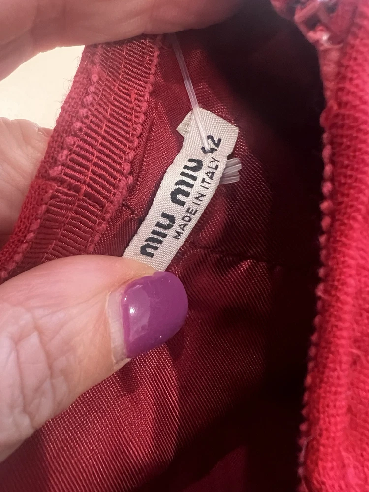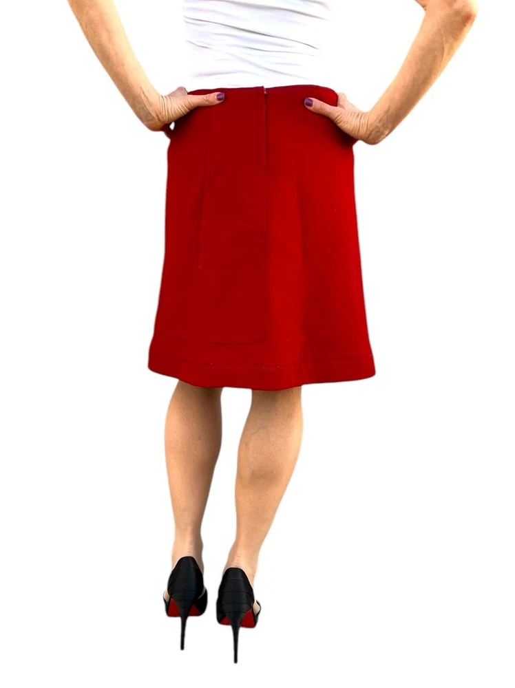 MIU MIU BY PRADA WOMEN'S RED A LINE MINI WOOL KNIT SKIRT SEAMED 42 6 GORGEOUS SKIRT SUPER STYLISH AND VERSATILE VIRGIN WOOL BLEND BEAUTIFUL RED HUE A LINE MINI/SHORT ASYMMETRICAL SEAMED DETAIL INSIDE LINING ZIPPER CLOSURE MADE IN ITALY PERFECT COMBINATION OF STYLE CLASS AND FASHION FLAIR-AMAZING QUALITY AND DESIGN SIZE 42 @ 6 BUT PLEASE CHECK MEASUREMENTS LENGTH-19.5 WAIST-28 HIPS-36 CONDITION: GENTLY WORN "Quality eBay Seller Since 2001- Buy With Confidence!" Please review the full Description and see all Photos prior to selecting this item for purchase. I send out with a tracking number and you will get your items super fast. I have a smoke free home. Please feel free to ask me any questions and Thank you for looking! Payment is due within 3 days of purchase. No returns as item is consigned.