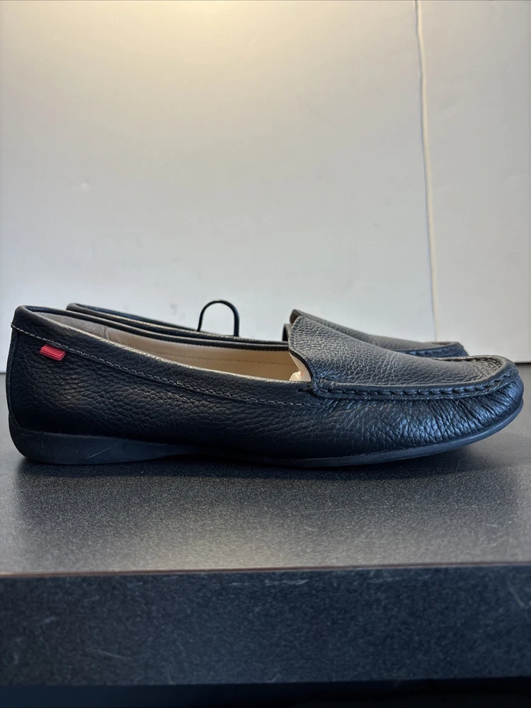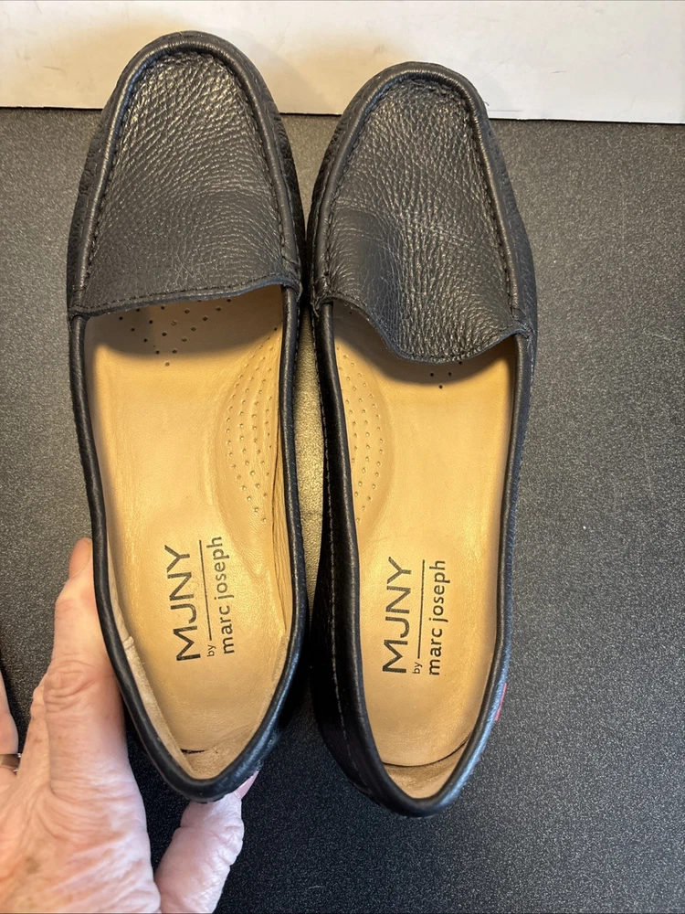 The MJNY Marc Joseph Women's Black Leather Loafer Lake Road Size 9.5 from Brazil is a stylish and versatile flat shoe designed for women. This loafer features a classic round toe shape and a comfortable leather lining, perfect for travel, casual outings, or business meetings. The black leather upper and outsole made of rubber add durability and sophistication to the design, making it a timeless addition to any wardrobe.