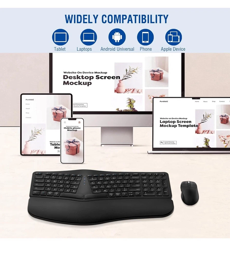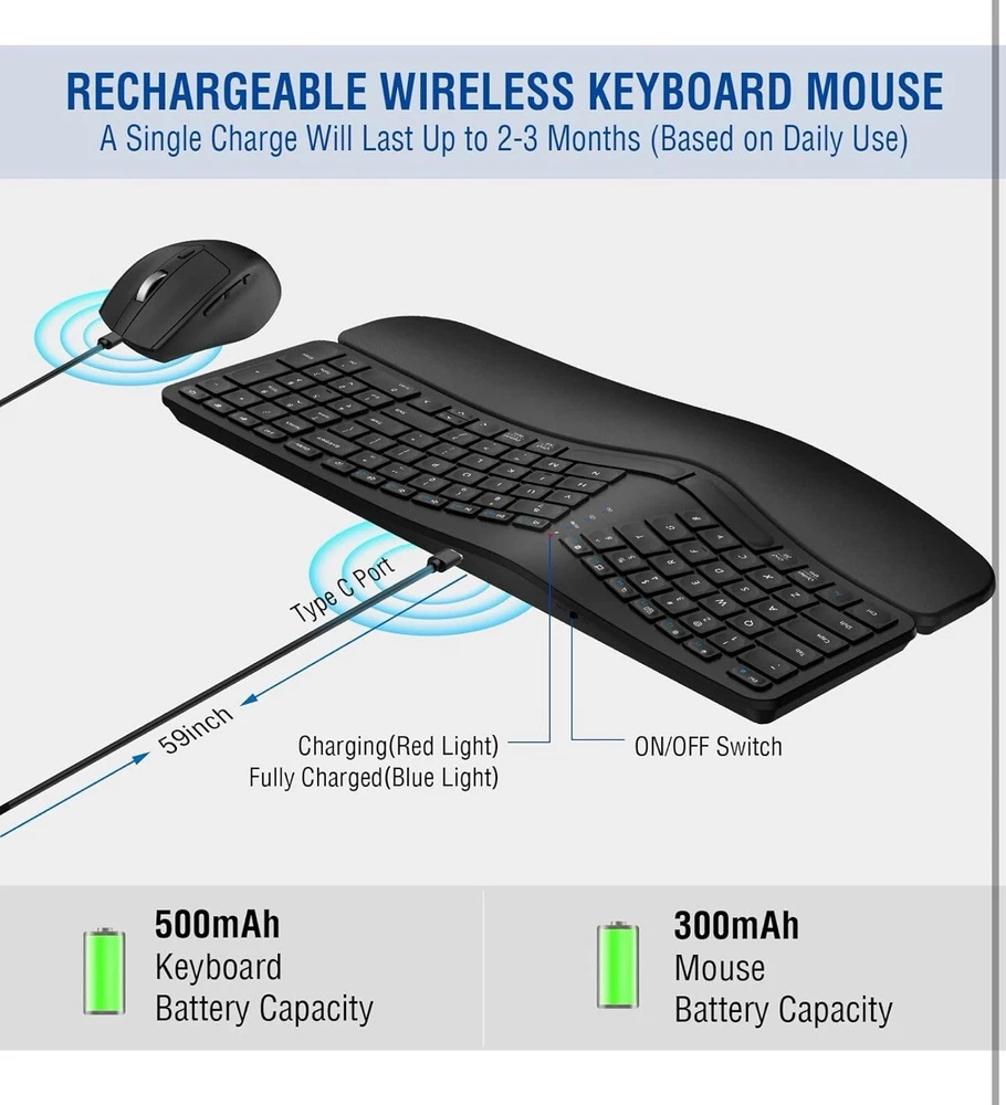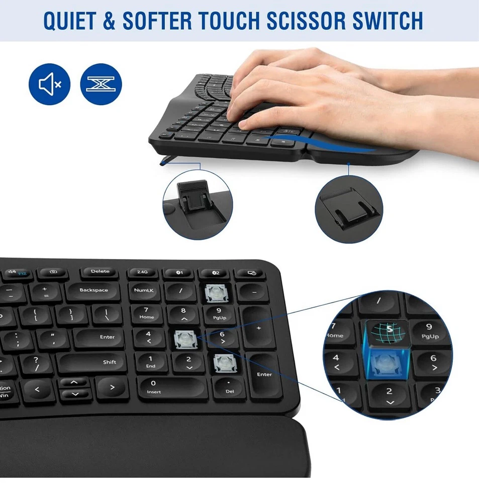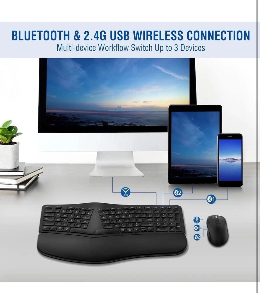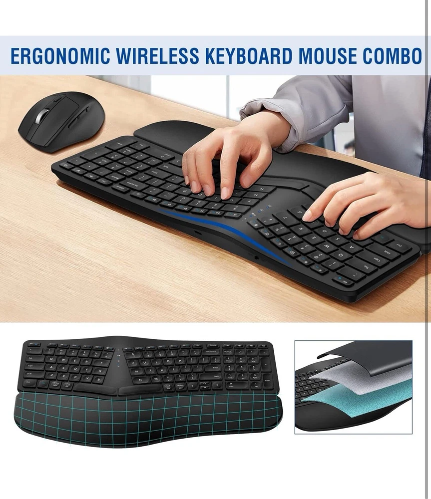 MK960 Ergonomic Wireless Keyboard Mouse Combo, Bluetooth/2.4G Split Design Keybo