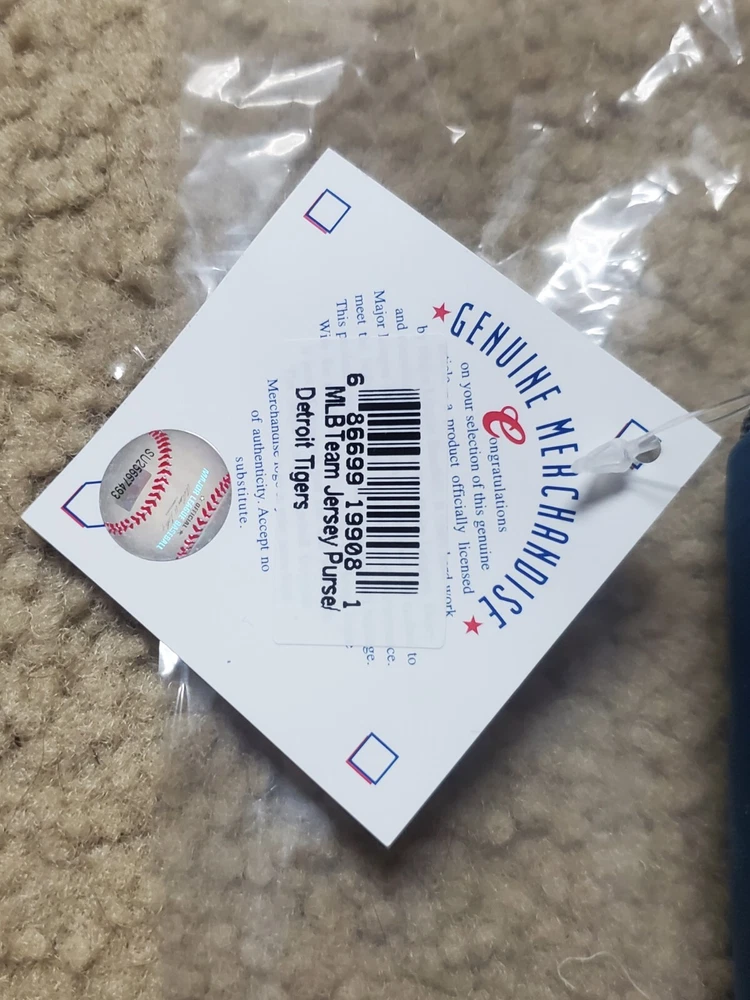 MLB Detroit Tigers Womens Jersey Purse New in packaging. Very cool little arm sling purse that resembles a mini jersey. Game jersey type material as well. 12 inches by 7 inches Ships same day