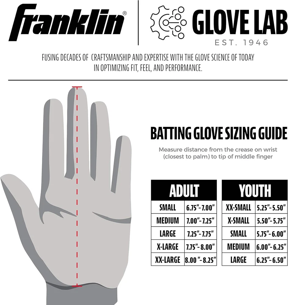 Store New Arrivals Add to Favorite View Feedback Contact MLB Digitek Batting Gloves – Adult and Youth Batting Glove – Tri-Curve Technology Fit – Genuine Leather Heel Patch – Etched Microfiber – Batting Gloves for Kids and Adults Description Sport Type Baseball Glove Type Batting Item Package Quantity 1 Package Quantity 1 Color White/Red/Navy Item Weight 0.05 Pounds Material Leather Material Type Leather Sport Baseball Global Trade Identification Number 00025725466924 Size Adult X-Large Product Care Instructions Hand Wash Only Age Range (Description) Adult Age Range Description Adult Closure Type Hook and Loop Additional Features Flexible Special Feature Flexible Style Name Digitek Adult League Name Major League Baseball OFFICIAL BATTING GLOVE OF THE MLB: Confidently step up to the plate with the Franklin Sports Digitek Batting Gloves. Our flexible, sturdy, multi-functional gloves offer an athletic feel, fit, and look with a patch of camo print for style. LEATHER HEEL PATCH: Our MLB Digitek Series features a top-grade genuine leather heel patch to cushion the hand while batting. Its durable stitching means it will last through endless innings. MICROFIBER MATERIAL: The durable palm provides a superior grip, giving your young MVPs a grasp on the bat that's sure to deliver results. The palm grips are tear-resistant and maintain their gripping ability over time. PERFECT FIT: Our Tri-Curve technology allows these gloves to maintain their shape while flexibly hugging the hand, providing the perfect snug fit. Our wide variety of available sizes means that you’re sure to find the ideal fit for your player. CUSTOMIZABLE COLORS: The Digitek Batting Gloves stand out from the crowd thanks to a small patch of camo design on the side of each glove. Multiple color options let you make your personality known out on the field. Whether it’s batting practice or the playoffs, your baseball player needs a solid set of gloves that can handle everything the game throws at them without bulkiness. Franklin’s MLB Digitek Batting Glove is a flexible, multi-functional batting glove with an athletic fit, feel, and look. It’s the ideal adult and youth batting glove, providing protection and a state-of-the-art grip. With multiple sizes available, you can find the ideal fit for your MVP. When it comes to batting, gloves are crucial to prevent sweaty hands from losing their grip on the bat. We’ve designed the Digitek Series with a digitally etched synthetic palm for a superior grip that lets you feel every swing and connection with the ball. The durability of genuine leather connects with the digitally etched synthetic palm for a hybrid construction that gives you targeted strength and sensitivity exactly where you need it for peak performance. Our tri-curve technology provides a perfect fit that molds to your hand. Each pair of Franklin Adult and Youth Batting Gloves fits snugly against the skin, so the hands can still flex and feel as perfectly as if they were bare. Most importantly, you get top-notch flexibility that keeps your grip on the bat firm. Multiple color options let you assert your personality, and a touch of camo print on the side of each glove adds a bit of flair. Our wide variety of sizes allows you to find the perfect fit, making the Digitek Series the ideal choice for young, constantly growing ball players. With Franklin batting gloves, adolescents are ready for their moment at the plate. Each set of Franklin Sports Digitek Batting Gloves comes with a quality-sewn pair in the size and color of your choice. ABOUT US We offer the best prices around on high quality products. Our E-store includes media such as books, movies, music and games while offering electronics, toys, sporting apparel, clothing, tools, general home, garden items and more. SHIPPING We are always working hard to ensure your package arrives as soon as possible. Please understand that some factors like weather, high postal traffic, and the performance of shipping companies are outside of our control. We offer free shipping to the lower 48 states and ship within 2 business days of payment, usually sooner. We do not accept P.O. Boxes. Please provide a physical address. For shipping outside of the continental USA, we only use eBay's Global Shipping Program.The item is shipped to KY and then sent to the rest of the world. International customers are responsible for all duties and taxes. Continue to check out in order to calculate costs for shipping the item to your country. Messages regarding eBay's Global Shipping Program MUST be directed at eBay EXCLUSIVELY. RETURNS We offer a 30-Day Return Policy on items which you are not completely satisfied with. You have the option for a full-refund or an exchange of the item. No returns are available on items shipped outside of the USA. PAYMENT We accept PayPal. CONTACT US This page content is yet to come Please ad us to your favorite seller and visit again later Thank You CUSTOMER SATISFACTION We try our very best to make sure every customer is completely satisfied. If there's a problem, message us! We're happy to help. WE ACCEPT Copyright © 2021 AutoDS. | All Rights Reserved