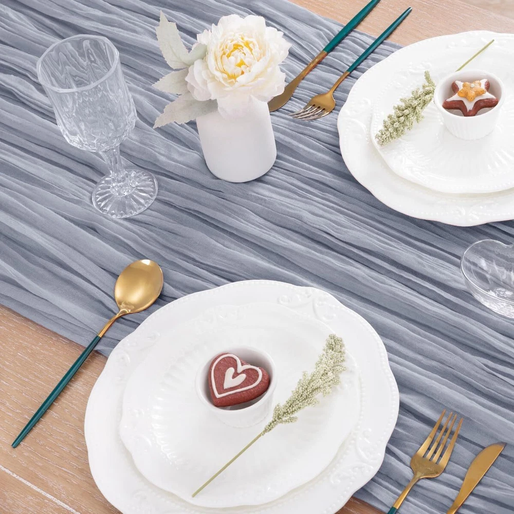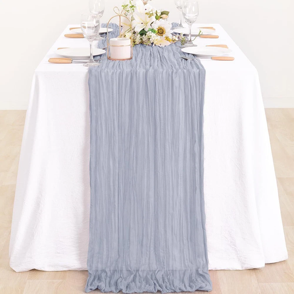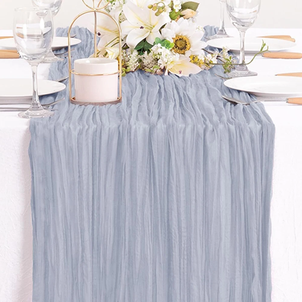 MLMC Cheesecloth Table Runner 10ft Gauze Rustic Grey - 1 Pack, Product Details Style: Country Rustic Product Care Instructions: Hand Wash, Machine Wash, Do Not Iron Product Dimensions: 120"L x 35"W Manufacturer: MLMC Item Weight: 4.6 ounces Country of Origin: China Color: Grey Material: Cheesecloth Size: 10ft - 1 Pack Brand: MLMC Pattern: Solid Specifications: Indulge in our 35x120 inches cheese cloth table runner—a 10 ft high-quality cheesecloth piece. Quality Craftsmanship: Wrinkled cheesecloth table runner are crafted from soft cheesecloth, hand-made, hand-dyed and sealed on all sides for lasting charm. Our bohemian-style runner can effortlessly elevate any event. Versatile Style: Natural wrinkle texture makes it ideal for weddings, baby showers, Birthday, picnics, parties, photography styling, receptions and more. Complete the Look: Elevate your table setting further by exploring our store's collection of matching napkins crafted from the same exquisite material. Instructions: Hand wash in cold water or machine wash in laundry bag with mild laundry detergent. In order to maintain the wrinkle texture, it's best not to iron.