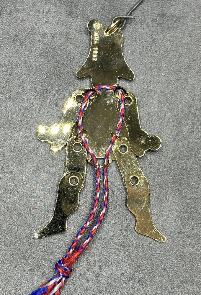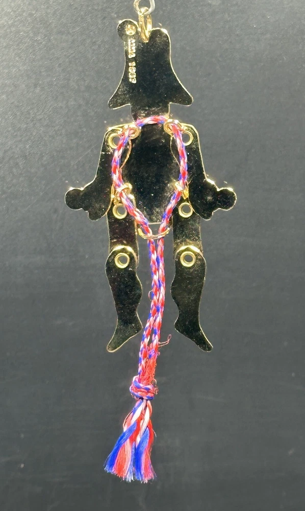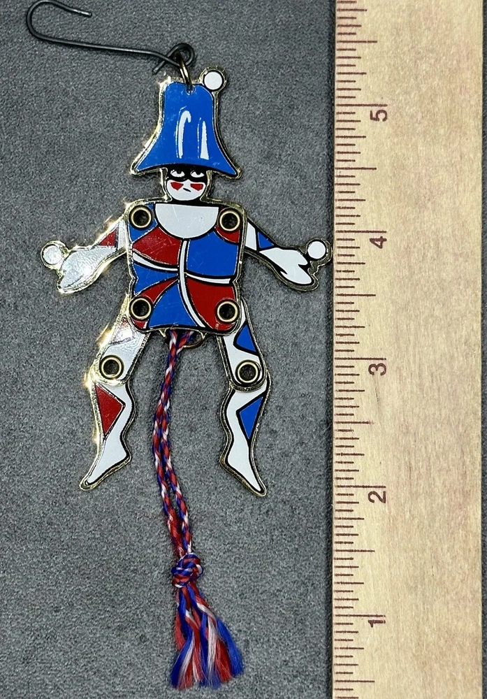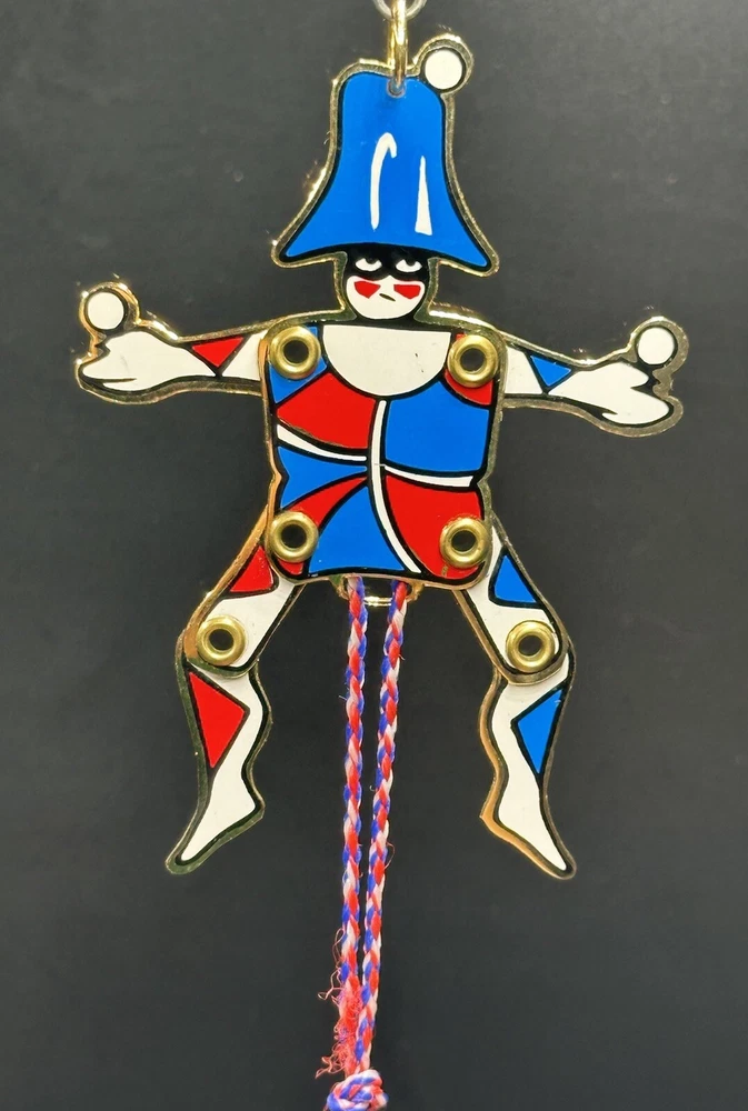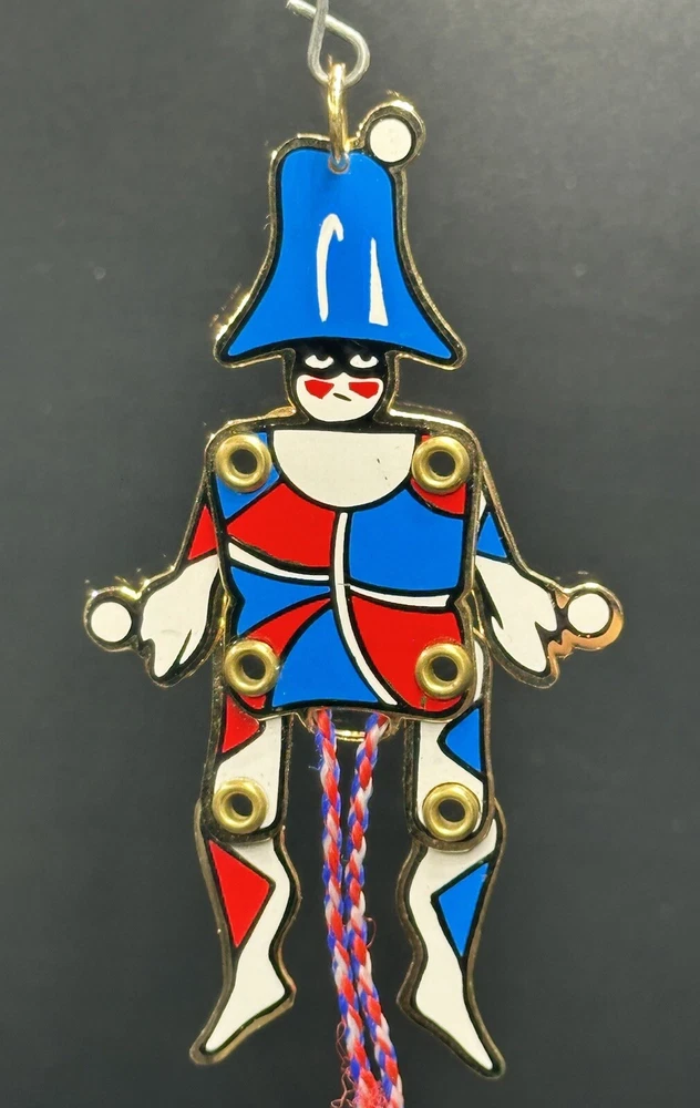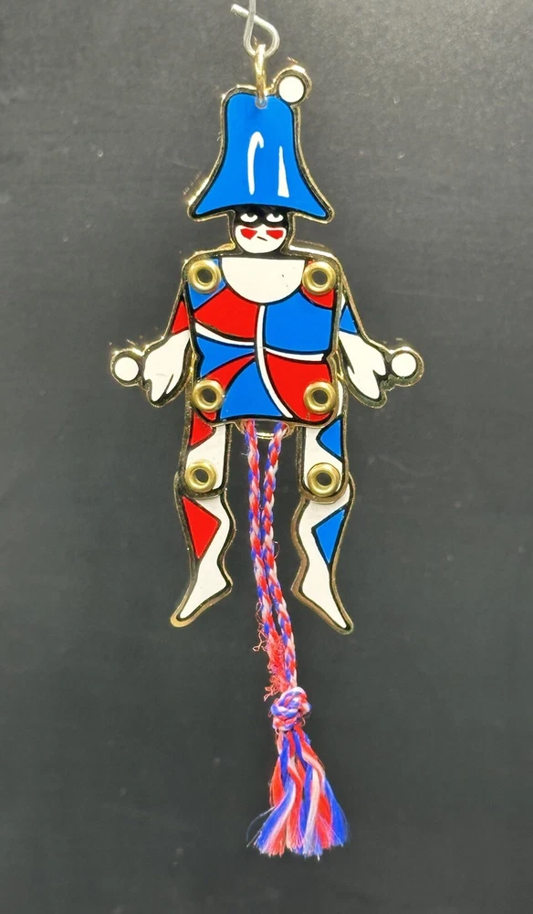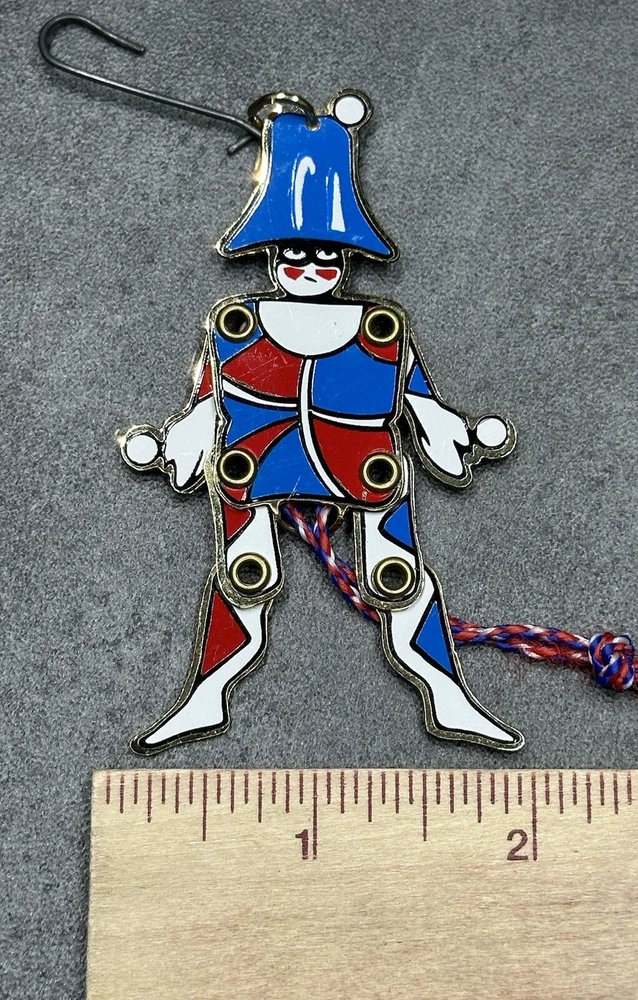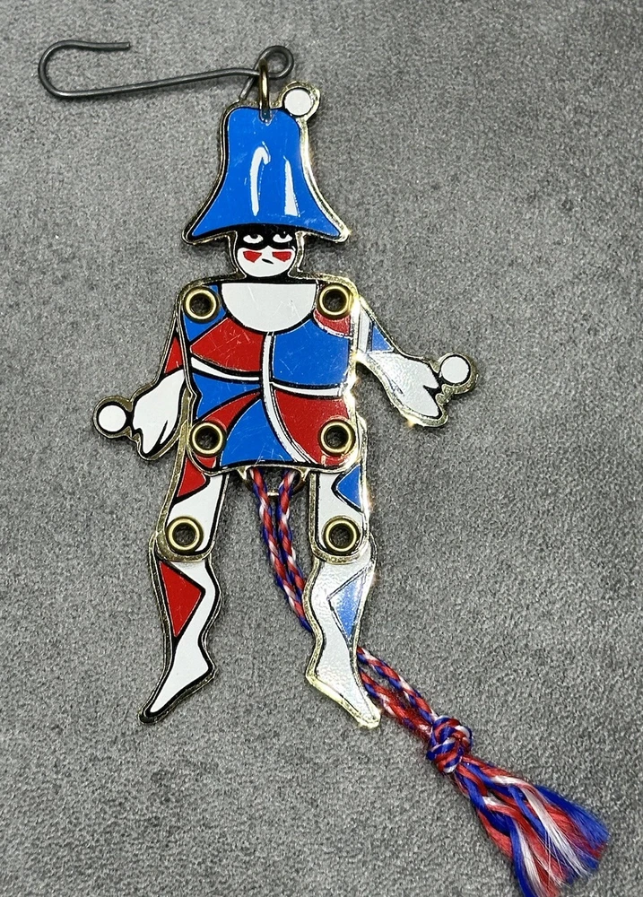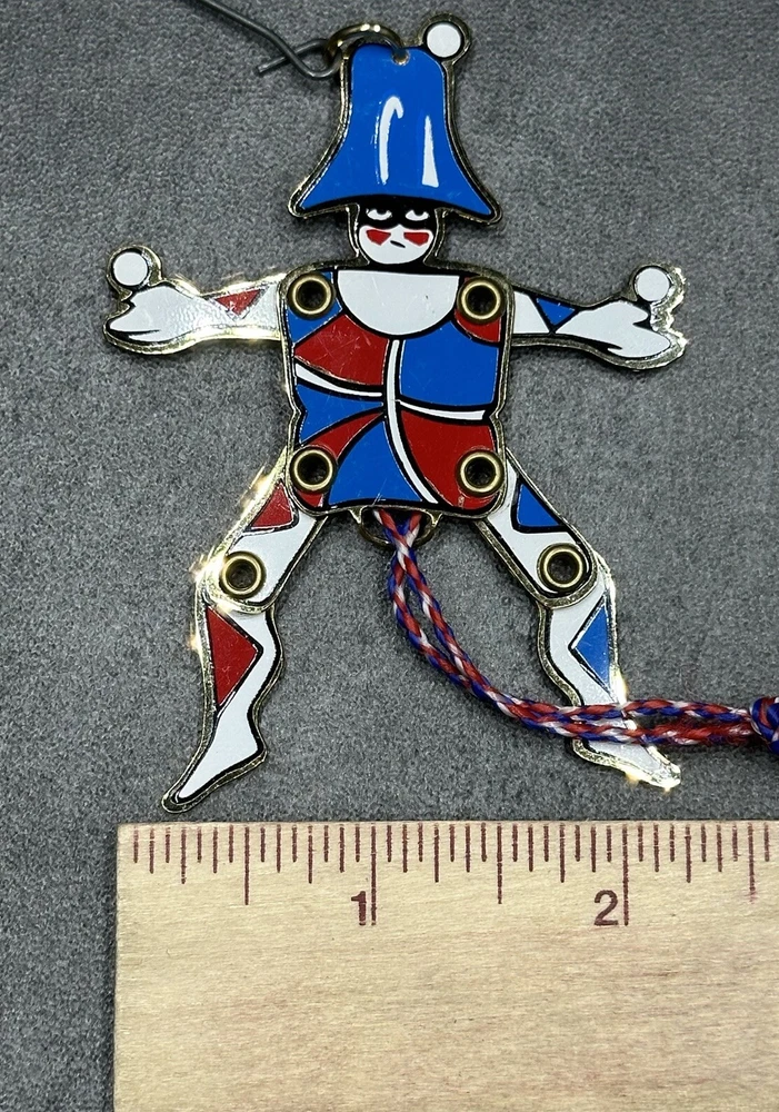 MMA Riveted Brass Pull String Juggler Penny Toy Ornament Hand Painted Christmas. Great condition. No breaks or cracks. Design is intact and vibrant. Pull string movement works. Maker’s info on back. Inspired by Gordon Craig. Item measures approximately 2x3.5x1/8 inches. **SEE PHOTOS FOR MORE DETAILS.