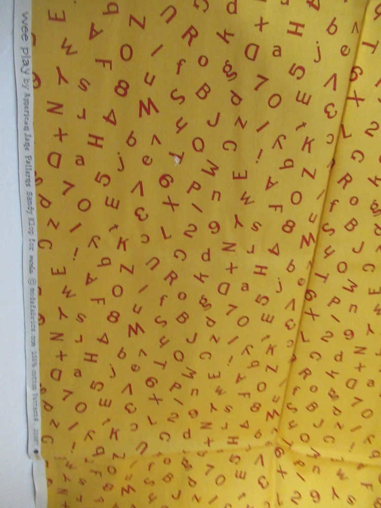 This MODA fabric features a Back to School theme with a vibrant yellow color. It is made of 100% cotton and is sold by the yard, measuring 36 x 44 inches. The pattern includes ABC's and numbers all over, making it perfect for quilting, crafting, and sewing. The fabric weighs medium and has a width of up to 45 inches. It is designed by Stacy lst Hsu and is great for those who want to create a patchwork look in their crafts. Please note that this fabric is not intended for children's sleepwear and is hard to describe accurately.