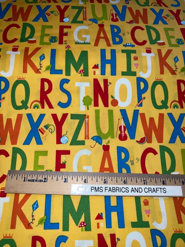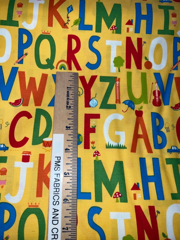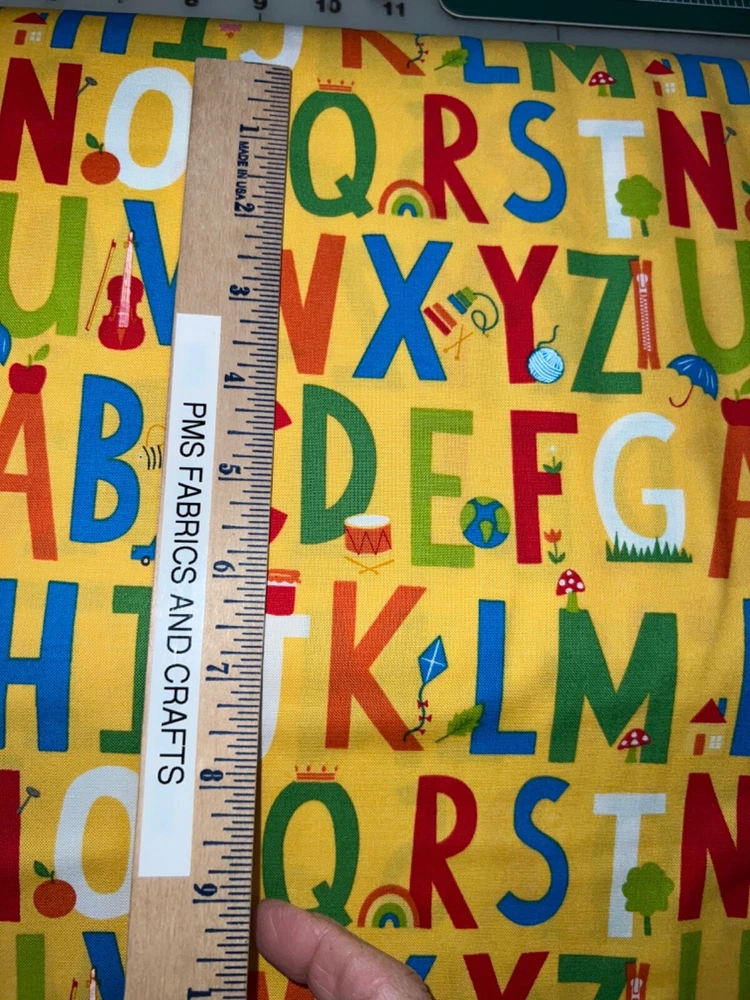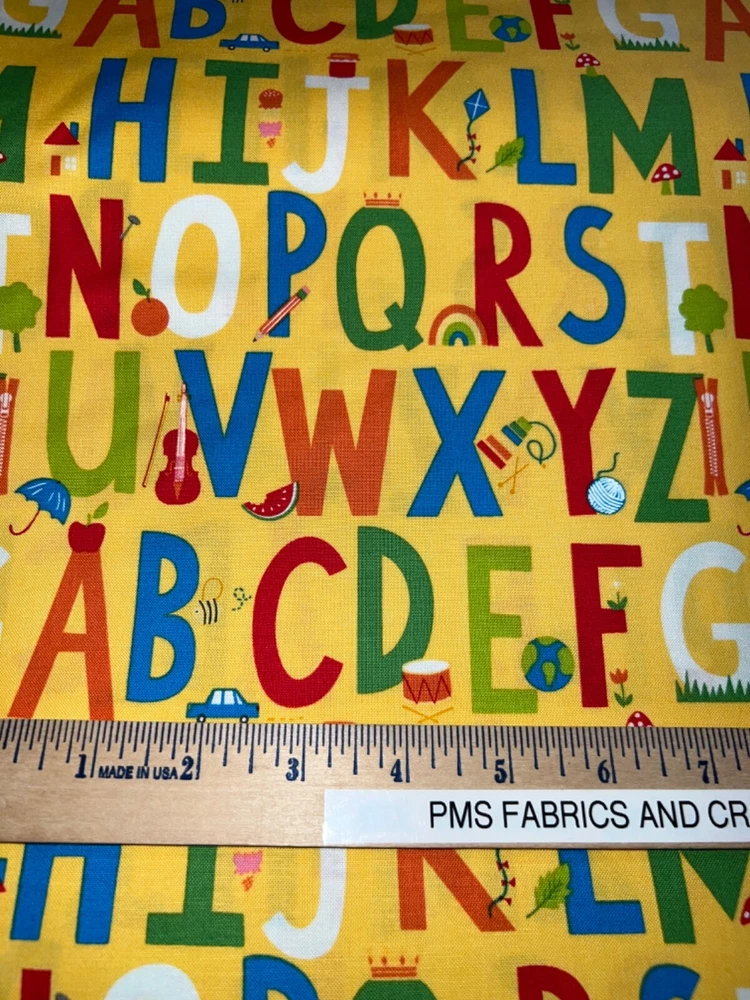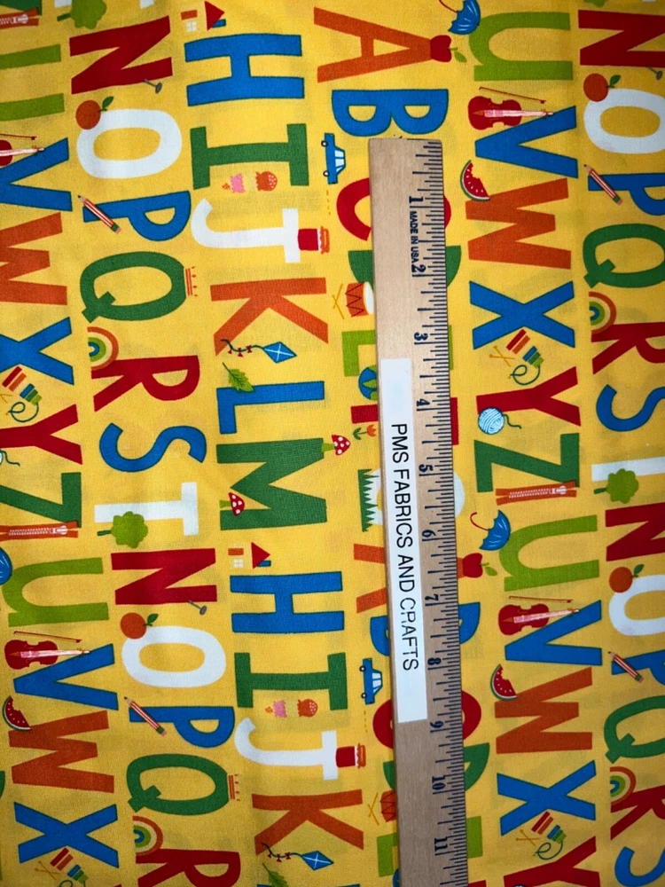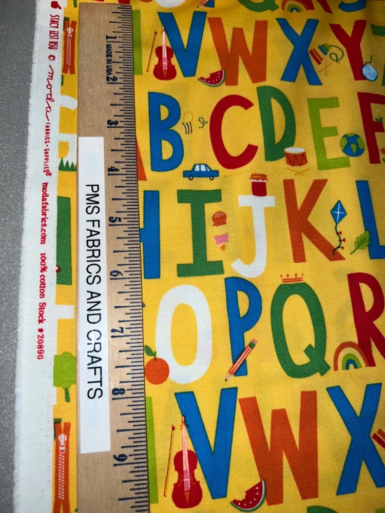 MODA 100% cotton fabric - very modern print - Sold by the YARD - each yard measures approximately 36 inches X 44 inches . Wonderful fabric collection called Back to School by Stacy lst HSU for MODA. The color on this print is called SCHOOL BUS - a school bus yellow tone background. The ABC's & the most common examples of them are printed on this fun print. Example A shows a little apple, C shows a car, T shows a tree, etc. Please review all pictures to see a ruler to show the approximate measurements. The ruler shown in some pictures is not included in the price. Review the picture with the selvage edge as well. These images and ABC's are printed from selvage edge to selvage edge. You will have some partial images at the cut lines. Reminder some computers or mobile devices may NOT show accurate colors. To see the other fabrics in this collection, search our store with the word SCHOOL. Uncut until ready to ship - whenever possible multiple yards should be mailed as 1 section BUT if this is important to you, please ask PRIOR to purchase to make sure that we have the amount that you need as 1 section. Would make great hot pads, reading pillows, table runners, mug rugs, quilt blocks & more! NEW unwashed 100% Cotton - in smoke free, vapor free & pet free home! Shipping is to USA only - please review the shipping tab for current shipping rates. PLEASE DO NOT pay for the items individually - WAIT to pay for all items together to save you time & money! When wanting to purchase 4 or more items (same item or can be a mixture of items from our store), please request a special listing! Just message me the item numbers that you want, the qty of each, your mailing zip code & then I can create you a special listing here on ebay with the correct shipping rate! This will save you money on shipping! As per Ebay customer support, Ebay programming will not allow a customer to request the invoice total since we offer discounts on our items, so in order to get the best rate shipping we must create a special item here on Ebay after you send us the item numbers, qty of each, & your mailing zip code. Once payment is received & clears Ebay & please make sure that the USA mailing address is correct on the payment, we will ship US Postal Service or for larger orders, we also use UPS for the best rate shipping. NOTE that the shipping is only good for the initial mailing. If the address is incorrect on your payment & the package is returned to us, you will be charged shipping again so that we can remail - this is why it is IMPORTANT that you make sure that your shipping address is correct on your payment! If your order had free shipping, then you will be charged a 2nd shipping fee as well - again this is why it is important to review your payment BEFORE you complete it. Please note that orders paid by Echecks will NOT be shipped until Ebay & your bank clears your payment which normally takes 3-5 business days. The time period for clearing TOTALLY depends on your bank & EBay but once the clearing is sent by Ebay, we will be able to mail the package. NOTE that the date on EBay is an ESTIMATED delivery date AFTER the payment clears Ebay. This is ONLY an estimate so please do not expect the package to arrive exactly on this date since once we mail the package we cannot control the time that it takes for USPS to deliver the package. Please be FAIR on your feedback since once we mail the package (you will get a tracking number & a message notice showing we mailed the package & the date) we cannot control the actual delivery date. Return policy - In order to comply with Ebay power seller guidelines, we are forced to accept returns for Ebay BUT please understand that any item that has been washed, cut or around smoke, vapor or pets will not get a full refund once the return is received at our location. This is due to the fact that we sell new - unwashed - smoke free - pet free items & once it is altered, washed or around smoke or pets, it is no longer sellable. Shipping for the original package is non-refundable - if your item had free shipping, the actual cost of shipping your order will be deducted from any refund. NOTE that any return on special listings or custom orders will be charged a 10% return fee! Please note that we include a packing slip with EVERY order that includes the order details like item, qty, our Ebay shop name and contact information. This helps prevent lost packages by the carrier in case where the label is removed from the outside of the package. Thanks for shopping pmscrafts74 – we appreciate your business & look forward to hearing from you!