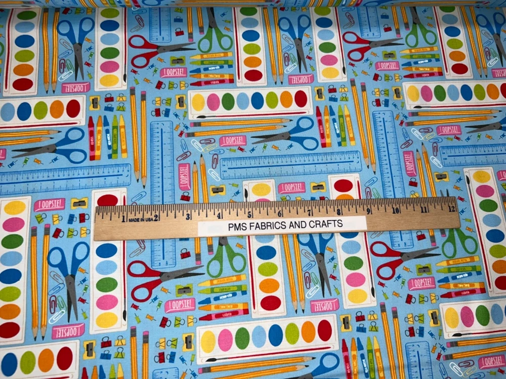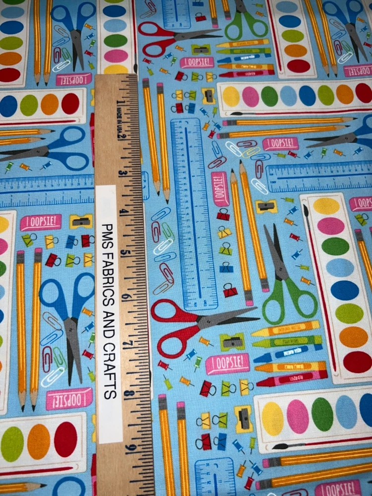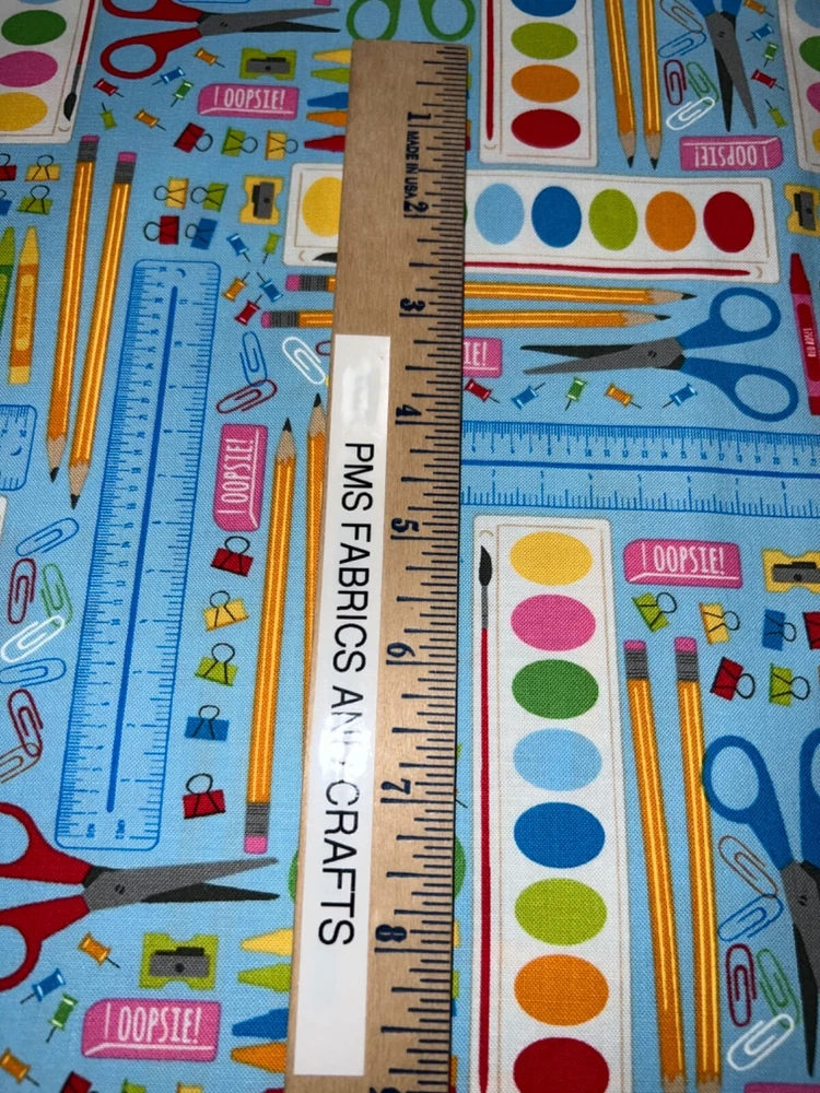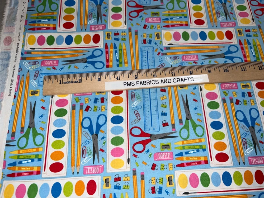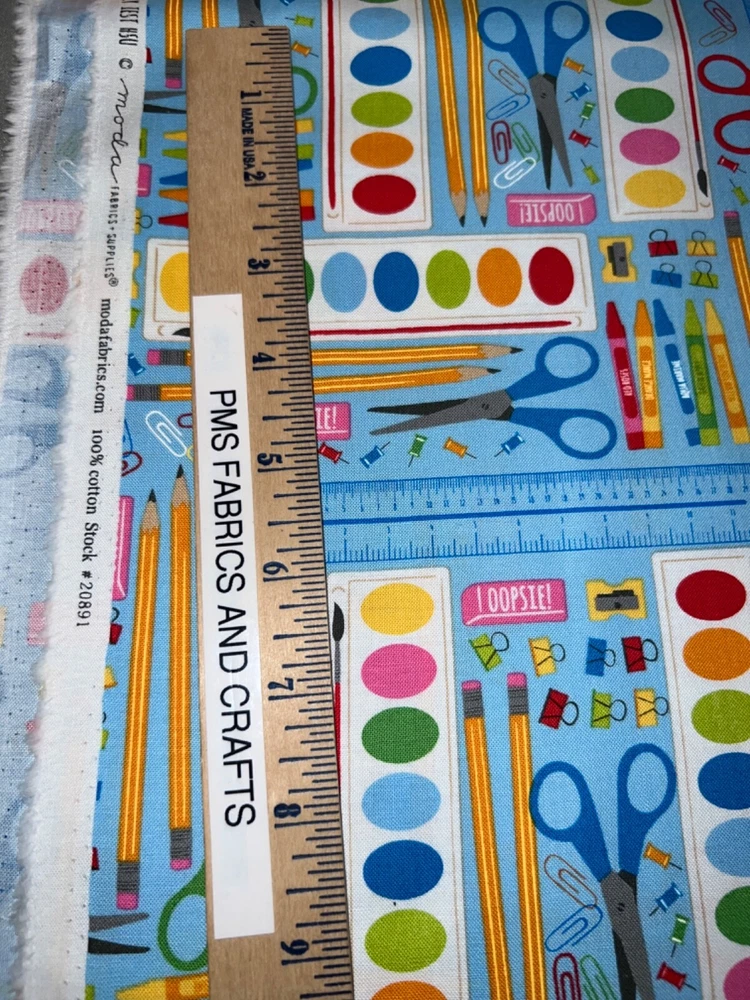 MODA 100% cotton fabric - very modern print - Sold by the YARD - each yard measures approximately 36 inches X 44 inches . Wonderful fabric collection called Back to School by Stacy lst HSU for MODA. The color on this print is called WATER - a nice blue water tone background. The images of art supplies are tossed but kind of organized all over this fabric. Please review all pictures to see a ruler to show the approximate measurements. The ruler shown in some pictures is not included in the price. Review the picture with the selvage edge as well. Reminder some computers or mobile devices may NOT show accurate colors. To see the other fabrics in this collection, search our store with the word SCHOOL. Uncut until ready to ship - whenever possible multiple yards should be mailed as 1 section BUT if this is important to you, please ask PRIOR to purchase to make sure that we have the amount that you need as 1 section. Would make great hot pads, reading pillows, table runners, mug rugs, quilt blocks & more! NEW unwashed 100% Cotton - in smoke free, vapor free & pet free home! Shipping is to USA only - please review the shipping tab for current shipping rates. PLEASE DO NOT pay for the items individually - WAIT to pay for all items together to save you time & money! When wanting to purchase 4 or more items (same item or can be a mixture of items from our store), please request a special listing! Just message me the item numbers that you want, the qty of each, your mailing zip code & then I can create you a special listing here on ebay with the correct shipping rate! This will save you money on shipping! As per Ebay customer support, Ebay programming will not allow a customer to request the invoice total since we offer discounts on our items, so in order to get the best rate shipping we must create a special item here on Ebay after you send us the item numbers, qty of each, & your mailing zip code. Once payment is received & clears Ebay & please make sure that the USA mailing address is correct on the payment, we will ship US Postal Service or for larger orders, we also use UPS for the best rate shipping. NOTE that the shipping is only good for the initial mailing. If the address is incorrect on your payment & the package is returned to us, you will be charged shipping again so that we can remail - this is why it is IMPORTANT that you make sure that your shipping address is correct on your payment! If your order had free shipping, then you will be charged a 2nd shipping fee as well - again this is why it is important to review your payment BEFORE you complete it. Please note that orders paid by Echecks will NOT be shipped until Ebay & your bank clears your payment which normally takes 3-5 business days. The time period for clearing TOTALLY depends on your bank & EBay but once the clearing is sent by Ebay, we will be able to mail the package. NOTE that the date on EBay is an ESTIMATED delivery date AFTER the payment clears Ebay. This is ONLY an estimate so please do not expect the package to arrive exactly on this date since once we mail the package we cannot control the time that it takes for USPS to deliver the package. Please be FAIR on your feedback since once we mail the package (you will get a tracking number & a message notice showing we mailed the package & the date) we cannot control the actual delivery date. Return policy - In order to comply with Ebay power seller guidelines, we are forced to accept returns for Ebay BUT please understand that any item that has been washed, cut or around smoke, vapor or pets will not get a full refund once the return is received at our location. This is due to the fact that we sell new - unwashed - smoke free - pet free items & once it is altered, washed or around smoke or pets, it is no longer sellable. Shipping for the original package is non-refundable - if your item had free shipping, the actual cost of shipping your order will be deducted from any refund. NOTE that any return on special listings or custom orders will be charged a 10% return fee! Please note that we include a packing slip with EVERY order that includes the order details like item, qty, our Ebay shop name and contact information. This helps prevent lost packages by the carrier in case where the label is removed from the outside of the package. Thanks for shopping pmscrafts74 – we appreciate your business & look forward to hearing from you!