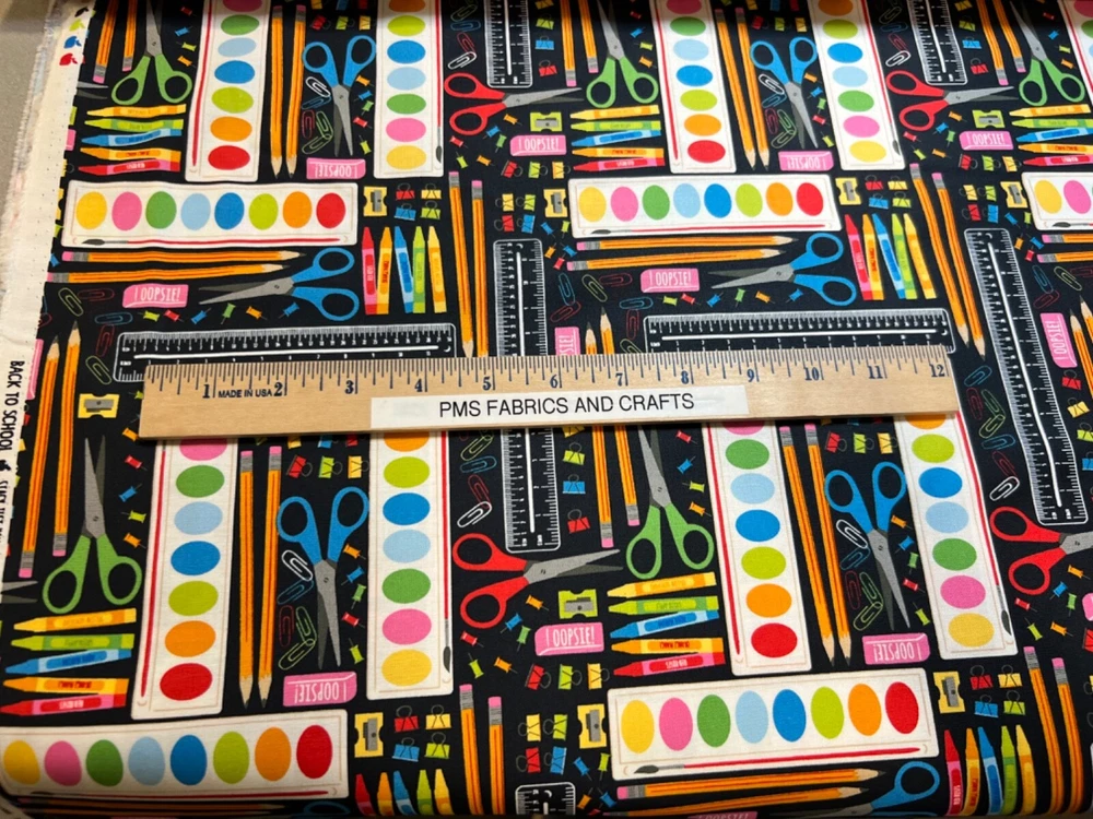 MODA 100% cotton fabric - very modern print - Sold by the YARD - each yard measures approximately 36 inches X 44 inches . Wonderful fabric collection called Back to School by Stacy lst HSU for MODA. The color on this print is called BLACKBOARD - a blackish tone background. The images of art supplies are tossed but kind of organized all over this fabric. Please review all pictures to see a ruler to show the approximate measurements. The ruler shown in some pictures is not included in the price. Review the picture with the selvage edge as well. Reminder some computers or mobile devices may NOT show accurate colors. To see the other fabrics in this collection, search our store with the word SCHOOL. Uncut until ready to ship - whenever possible multiple yards should be mailed as 1 section BUT if this is important to you, please ask PRIOR to purchase to make sure that we have the amount that you need as 1 section. Would make great hot pads, reading pillows, table runners, mug rugs, quilt blocks & more! NEW unwashed 100% Cotton - in smoke free, vapor free & pet free home! Shipping is to USA only - please review the shipping tab for current shipping rates. PLEASE DO NOT pay for the items individually - WAIT to pay for all items together to save you time & money! When wanting to purchase 4 or more items (same item or can be a mixture of items from our store), please request a special listing! Just message me the item numbers that you want, the qty of each, your mailing zip code & then I can create you a special listing here on ebay with the correct shipping rate! This will save you money on shipping! As per Ebay customer support, Ebay programming will not allow a customer to request the invoice total since we offer discounts on our items, so in order to get the best rate shipping we must create a special item here on Ebay after you send us the item numbers, qty of each, & your mailing zip code. Once payment is received & clears Ebay & please make sure that the USA mailing address is correct on the payment, we will ship US Postal Service or for larger orders, we also use UPS for the best rate shipping. NOTE that the shipping is only good for the initial mailing. If the address is incorrect on your payment & the package is returned to us, you will be charged shipping again so that we can remail - this is why it is IMPORTANT that you make sure that your shipping address is correct on your payment! If your order had free shipping, then you will be charged a 2nd shipping fee as well - again this is why it is important to review your payment BEFORE you complete it. Please note that orders paid by Echecks will NOT be shipped until Ebay & your bank clears your payment which normally takes 3-5 business days. The time period for clearing TOTALLY depends on your bank & EBay but once the clearing is sent by Ebay, we will be able to mail the package. NOTE that the date on EBay is an ESTIMATED delivery date AFTER the payment clears Ebay. This is ONLY an estimate so please do not expect the package to arrive exactly on this date since once we mail the package we cannot control the time that it takes for USPS to deliver the package. Please be FAIR on your feedback since once we mail the package (you will get a tracking number & a message notice showing we mailed the package & the date) we cannot control the actual delivery date. Return policy - In order to comply with Ebay power seller guidelines, we are forced to accept returns for Ebay BUT please understand that any item that has been washed, cut or around smoke, vapor or pets will not get a full refund once the return is received at our location. This is due to the fact that we sell new - unwashed - smoke free - pet free items & once it is altered, washed or around smoke or pets, it is no longer sellable. Shipping for the original package is non-refundable - if your item had free shipping, the actual cost of shipping your order will be deducted from any refund. NOTE that any return on special listings or custom orders will be charged a 10% return fee! Please note that we include a packing slip with EVERY order that includes the order details like item, qty, our Ebay shop name and contact information. This helps prevent lost packages by the carrier in case where the label is removed from the outside of the package. Thanks for shopping pmscrafts74 – we appreciate your business & look forward to hearing from you!