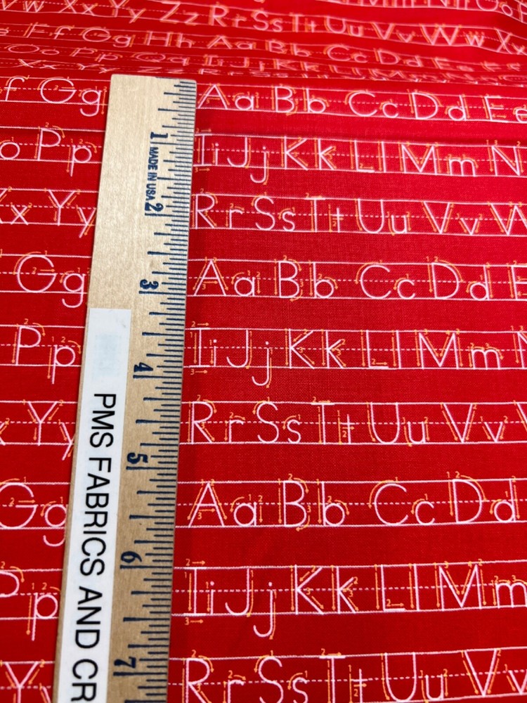 MODA 100% cotton fabric - very modern print - Sold by the YARD - each yard measures approximately 36 inches X 44 inches . Wonderful fabric collection called Back to School by Stacy lst HSU for MODA. The color on this print is called APPLE - nice apple red tone background. The images of ABC's on writing lines may not be lined up perfectly and you will have partial images at the cut edges. Please review all pictures to see a ruler to show the approximate measurements. The ruler shown in some pictures is not included in the price. Review the picture with the selvage edge as well. Images are printed selvage edge to selvage edge. Reminder some computers or mobile devices may NOT show accurate colors. To see the other fabrics in this collection, search our store with the word SCHOOL. Uncut until ready to ship - whenever possible multiple yards should be mailed as 1 section BUT if this is important to you, please ask PRIOR to purchase to make sure that we have the amount that you need as 1 section. Would make great hot pads, reading pillows, table runners, mug rugs, quilt blocks & more! NEW unwashed 100% Cotton - in smoke free, vapor free & pet free home! Shipping is to USA only - please review the shipping tab for current shipping rates. PLEASE DO NOT pay for the items individually - WAIT to pay for all items together to save you time & money! When wanting to purchase 4 or more items (same item or can be a mixture of items from our store), please request a special listing! Just message me the item numbers that you want, the qty of each, your mailing zip code & then I can create you a special listing here on ebay with the correct shipping rate! This will save you money on shipping! As per Ebay customer support, Ebay programming will not allow a customer to request the invoice total since we offer discounts on our items, so in order to get the best rate shipping we must create a special item here on Ebay after you send us the item numbers, qty of each, & your mailing zip code. Once payment is received & clears Ebay & please make sure that the USA mailing address is correct on the payment, we will ship US Postal Service or for larger orders, we also use UPS for the best rate shipping. NOTE that the shipping is only good for the initial mailing. If the address is incorrect on your payment & the package is returned to us, you will be charged shipping again so that we can remail - this is why it is IMPORTANT that you make sure that your shipping address is correct on your payment! If your order had free shipping, then you will be charged a 2nd shipping fee as well - again this is why it is important to review your payment BEFORE you complete it. Please note that orders paid by Echecks will NOT be shipped until Ebay & your bank clears your payment which normally takes 3-5 business days. The time period for clearing TOTALLY depends on your bank & EBay but once the clearing is sent by Ebay, we will be able to mail the package. NOTE that the date on EBay is an ESTIMATED delivery date AFTER the payment clears Ebay. This is ONLY an estimate so please do not expect the package to arrive exactly on this date since once we mail the package we cannot control the time that it takes for USPS to deliver the package. Please be FAIR on your feedback since once we mail the package (you will get a tracking number & a message notice showing we mailed the package & the date) we cannot control the actual delivery date. Return policy - In order to comply with Ebay power seller guidelines, we are forced to accept returns for Ebay BUT please understand that any item that has been washed, cut or around smoke, vapor or pets will not get a full refund once the return is received at our location. This is due to the fact that we sell new - unwashed - smoke free - pet free items & once it is altered, washed or around smoke or pets, it is no longer sellable. Shipping for the original package is non-refundable - if your item had free shipping, the actual cost of shipping your order will be deducted from any refund. NOTE that any return on special listings or custom orders will be charged a 10% return fee! Please note that we include a packing slip with EVERY order that includes the order details like item, qty, our Ebay shop name and contact information. This helps prevent lost packages by the carrier in case where the label is removed from the outside of the package. Thanks for shopping pmscrafts74 – we appreciate your business & look forward to hearing from you!