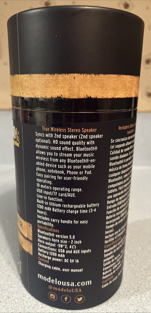 Experience high-quality sound on the go with the Modelo Portable Bluetooth Speaker. This speaker system is designed to deliver powerful audio performance with its 5W RMS power output. Connect your device wirelessly through Bluetooth and enjoy your favorite tunes without the hassle of cords. This speaker is compatible with universal brands and models, making it a versatile choice for all your audio needs. It comes in a sleek black color, adding a stylish touch to your music experience. With audio inputs available through USB and AUX, you can easily connect multiple devices to this speaker system.