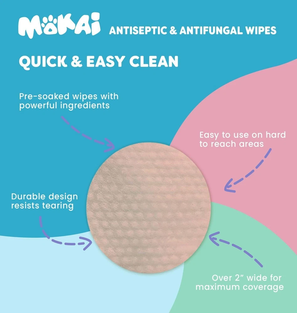 MOKAI Antiseptic Wipes for Dogs Cats and Horses | Dog X-Small,