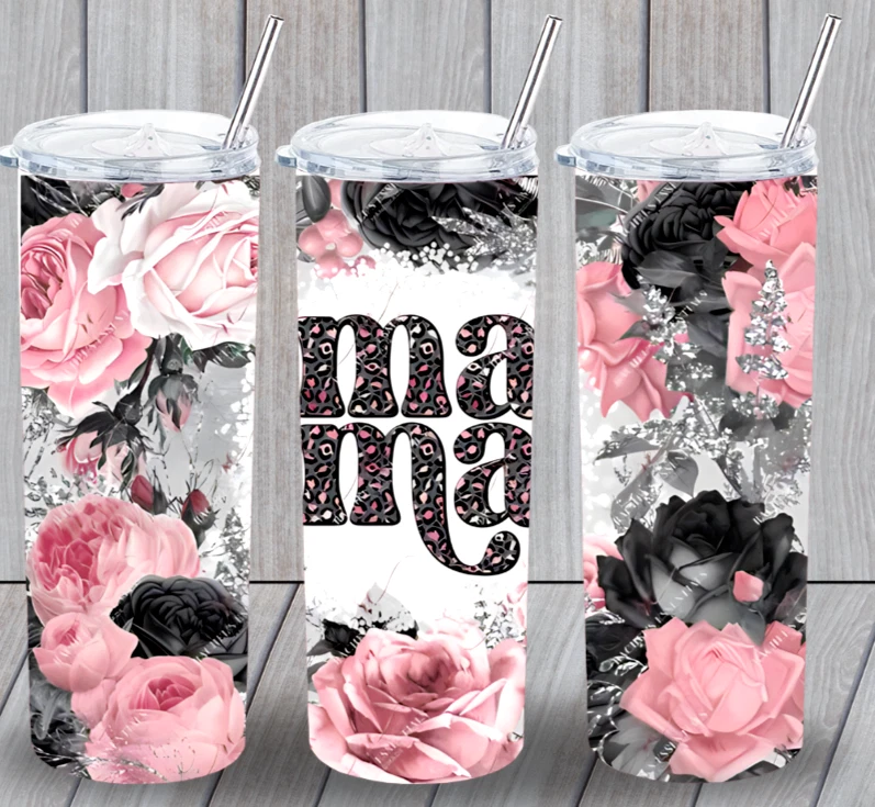 MOM LIFE 12 Mama Roses Multicolor 20oz Insulated Tumbler Lid Clear Straw New