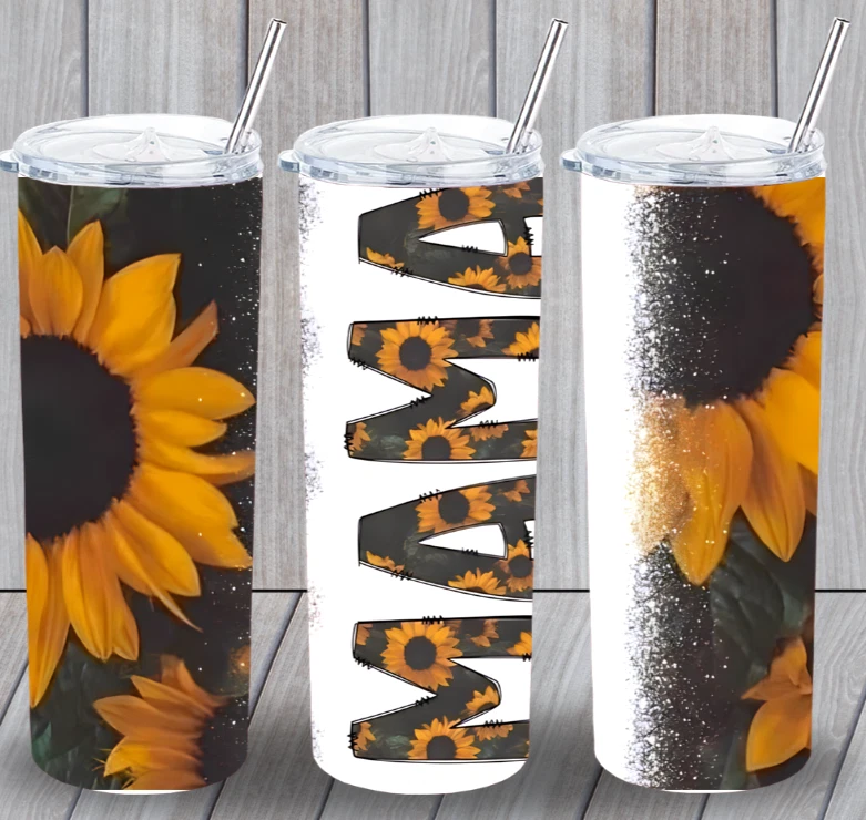 MOM LIFE 14 Mama Sunflowers Multicolor 20oz Insulated Tumbler Lid Straw New