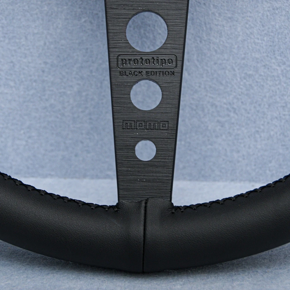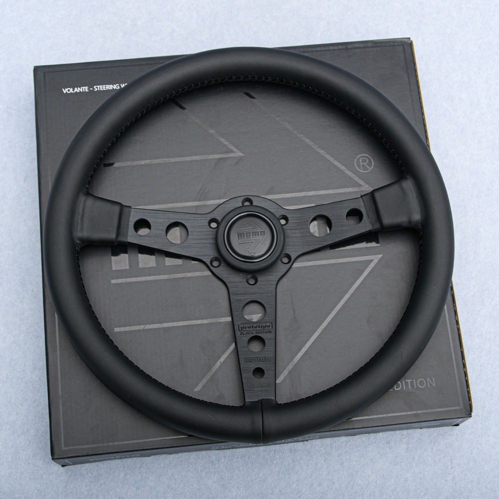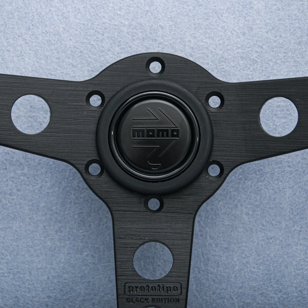 MOMO Prototipo P5 Black Edition 350mm 14' Genuine Leather Sport Steering Wheel Features: - Brand: MOMO Prototipo Black Edition - Material: Aluminum Spoke + Genuine Leather - Ideal for Rally/Drift/Race - Comes with horn button and horn wire attachment. - Diameter : 350mm (about 14inch) - Color : Black Cover + Black Stitching + Black Horn - PCD: 6x70mm - Fits most 6 bolt pattern boss kit (MOMO, Sparco, OMP, HKB etc). Package Includes: 1 x Steering Wheel 1x horn button 6x Hardware Wiring Allen Key