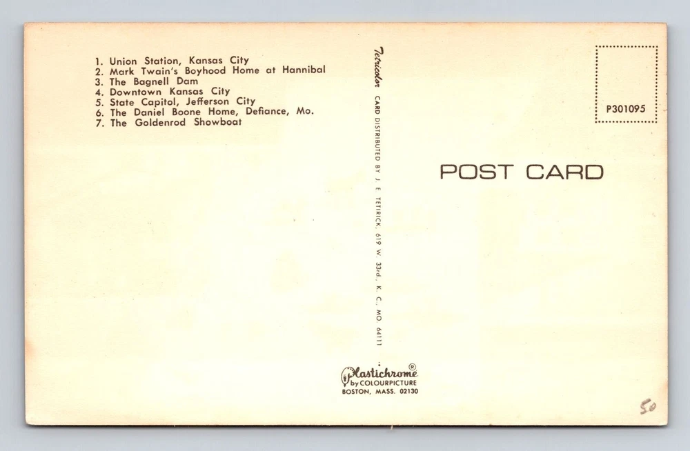 City: Missouri Country: USA Theme: Cities & Towns Original/Licensed Reprint: Original Subject: Cities & Towns Country/Region of Manufacture: Unknown Type: Printed (Lithograph) Era: Vintage Region: Missouri Postage Condition: Unposted Unit of Sale: Single Unit