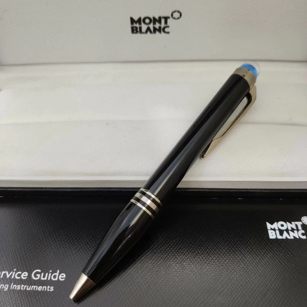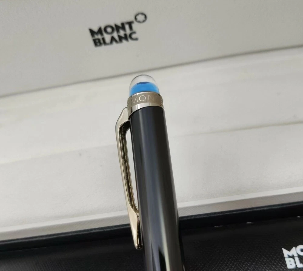 AUTHENTIC Montblanc Starwalker Midnight Black Resin Ballpoint Pen 105657 The Starwalker Midnight Black resin ballpoint pen is Montblanc's newest addition to the contemporary Starwalker Collection reflecting a unique and dynamic style. Like the rest of the Starwalker collection, this resin ballpoint pen excels by its modern lines and use of innovative materials. The Midnight Black Ballpoint features precious resin with ruthenium-coated details, a characteristic clip design and the floating Montblanc emblem provide a modern take on Montblanc's values – creating a timeless design for tomorrow's world. Details: Type: Ballpoint Ink Color: Black Refillable Ink: Yes Pen Closure: Twist mechanism Manufacture r Reference # 105657 Should you have any further questions please feel free to e-mail. Thank you!