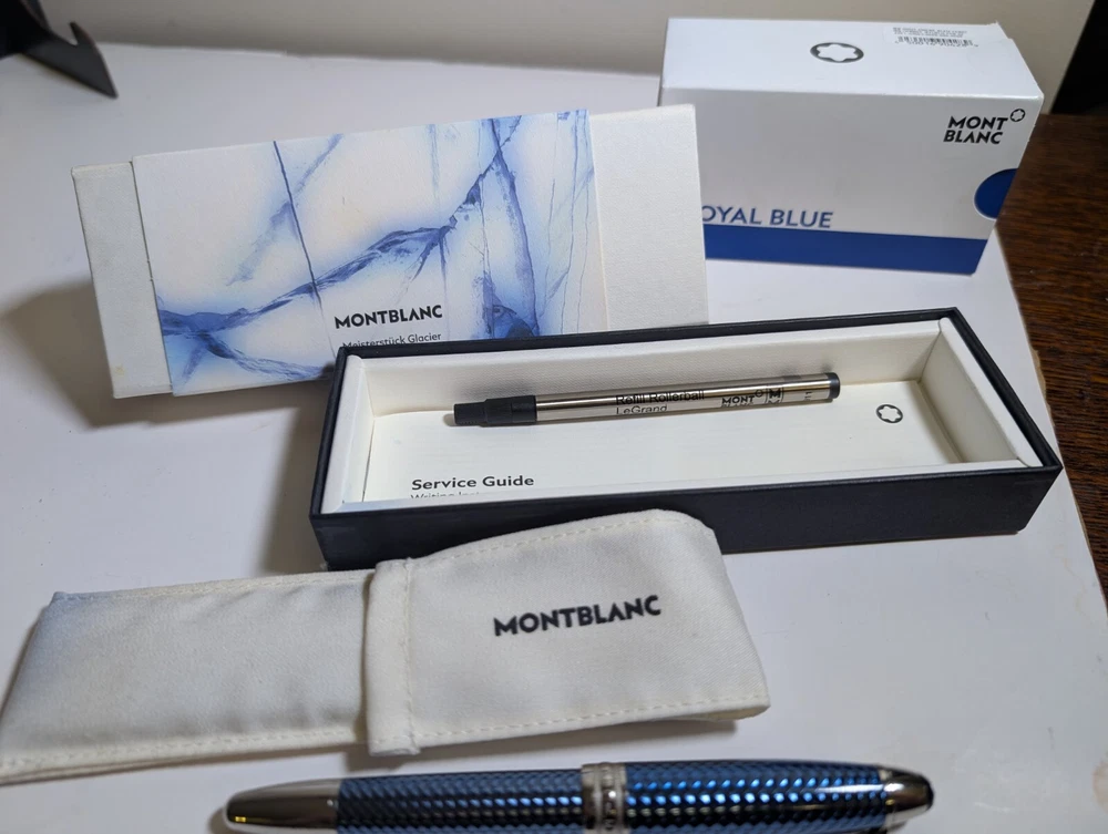 Experience the luxury of writing with the MONTBLANC Translucent Blue Lacquer Meisterstück Glacier Rollerball Pen, a testament to Montblanc's commitment to quality and elegance. The pen's sleek design is complemented by its smooth, glacier blue finish, making it a stylish addition to any collection or a sophisticated gift for a discerning writer. Crafted for those who appreciate fine craftsmanship, this fountain pen offers a comfortable writing experience with its precision-engineered nib. The rollerball pen is perfect for both everyday use and special occasions, seamlessly blending functionality with the panache expected from a brand synonymous with excellence.