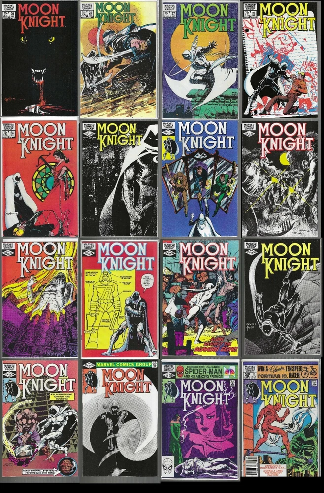 MOON KNIGHT #2-24,26-31,33-38 #2, 3, 4, 5, 6, 7, 8, 9, 10, 11, 12 13, 14, 15, 16, 17, 18, 19, 20, 21 22, 23, 24, 26, 27, 28, 29, 30, 31 33, 34, 35, 36, 37, & 38 HIGH GRADE RUN OF BRONZE AGE MOON KNIGHT GEMS THAT FEATURE MANY 1ST APPEARANCES AND KEYS: #3 ~ 1st appearance of Midnight Man, a costumed thief! #8 ~ Classic Cover art by Bill Sienkiewicz! #12 ~ 1st appearance of Morpheus, a man who turned into a monster! #13 ~ First battle of Moon Knight versus Daredevil! #14 ~ 1st appearance and origin of Stained Glass Scarlet, a former nun who became a vigilante! #15 ~ 1st appearance of Xenos, a psychopath who led an army of rats! #20 ~ Classic Cover art by Bill Sienkiewicz! #21 ~ First meeting of Moon Knight and Brother Voodoo! #23 ~ Classic Cover art by Bill Sienkiewicz! #24 ~ Early Negative space cover! #29 ~ Classic Cover art by Bill Sienkiewicz featuring Werewolf By Night! #30 ~ Classic Cover art by Bill Sienkiewicz ! #31 ~ Classic Cover art by Bill Sienkiewicz ! #36 ~ First meeting of Moon Knight and Doctor Strange! #37 ~ Origin of Marc Spector & 1st appearance of Elias Spector! #38 ~ Final Issue Low Print Run! (LOT OF 35 ISSUES) ALMOST COMPLETE RUN MARVEL COMICS 1980-1984 1ST PRINTS, IN AN AVERAGE OF 9.2/9.6 NM-/NM+ CONDITION! MUST HAVE BOOKS FOR ANY SERIOUS MOON KNIGHT COLLECTION! All photos carefully represent the actual books you will receive! Ships Fast, FREE, and Safely for you! ~~~~~~ These books will ship fast and securely for you! If you have any questions or need anything, please let me know because I'm only happy when you're happy so let's make it happen! Check out my other listings for more Cool Stuf! Here’s a link to the rest of my listed books and you’ll find that I stand behind the items I list, from comics to collectibles and because anything I list is Just Cool Stuf! THANK YOU for looking!! Please check out my other listings that I have for sale. SHIPPING I ALWAYS SHIP BOOKS THE WAY THAT I WANT THEM SHIPPED TO ME! FAST USPS PRIORITY MAIL FOR TRACKING, QUICK, BOXED AND PADDED, INSURED, AND BEST OF ALL IT'S SENT AS SOON AS I RECEIVE YOUR PAYMENT! Item(s) will be shipped within 2 business days after receiving payment. I ONLY ship to United States addresses (Yes, I WILL ship to APO/FPO/DPO?s). ALL photos shown are of the comic book you will receive upon winning the bid. Comic will be shipped to you bagged and boarded then padded safely in a box with a protective layer. Comes from a smoke free home. Payment : Payment must be received no later than 3 days after purchase. I only accept payment via Ebay.com. If for whatever reason you are not satisfied with your purchase(s), please contact me. I am more than willing to resolve any reasonable dispute. If you have any questions about the listing please contact me .