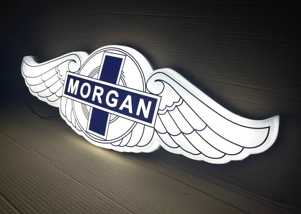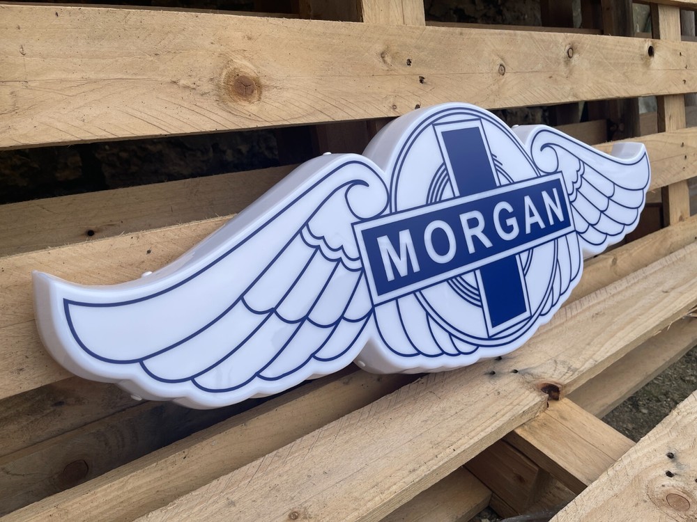 MORGAN LED LIGHT UP WALL SIGN 88CM X 30.5CM X 5CM (34.5" X 12" X 2") keyholes to the rear for hanging Supplied with 3 meter length cable and adaptor of your choice LED ILLUMINATED WALL SIGN A unique concept, for your Office, Home Cinema, Games Room, Garage, Man cave, Shed, Bar, Den Restaurant or Business MANUFACTURED IN THE UK Shipping Dispatched by tracked courier service