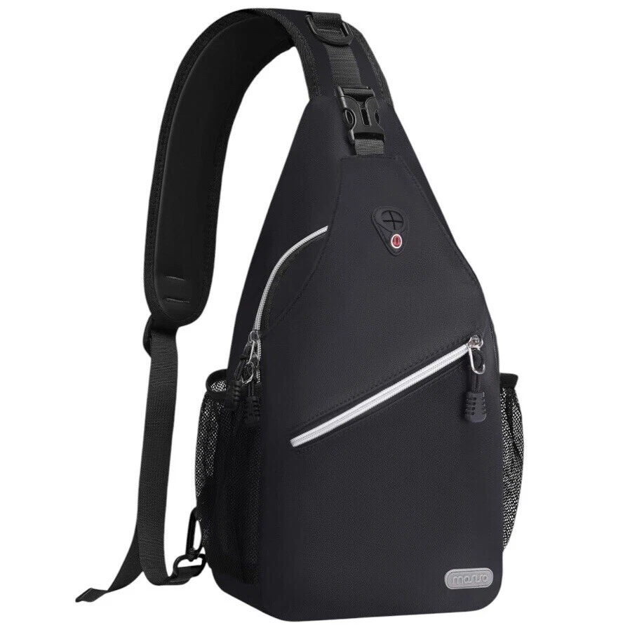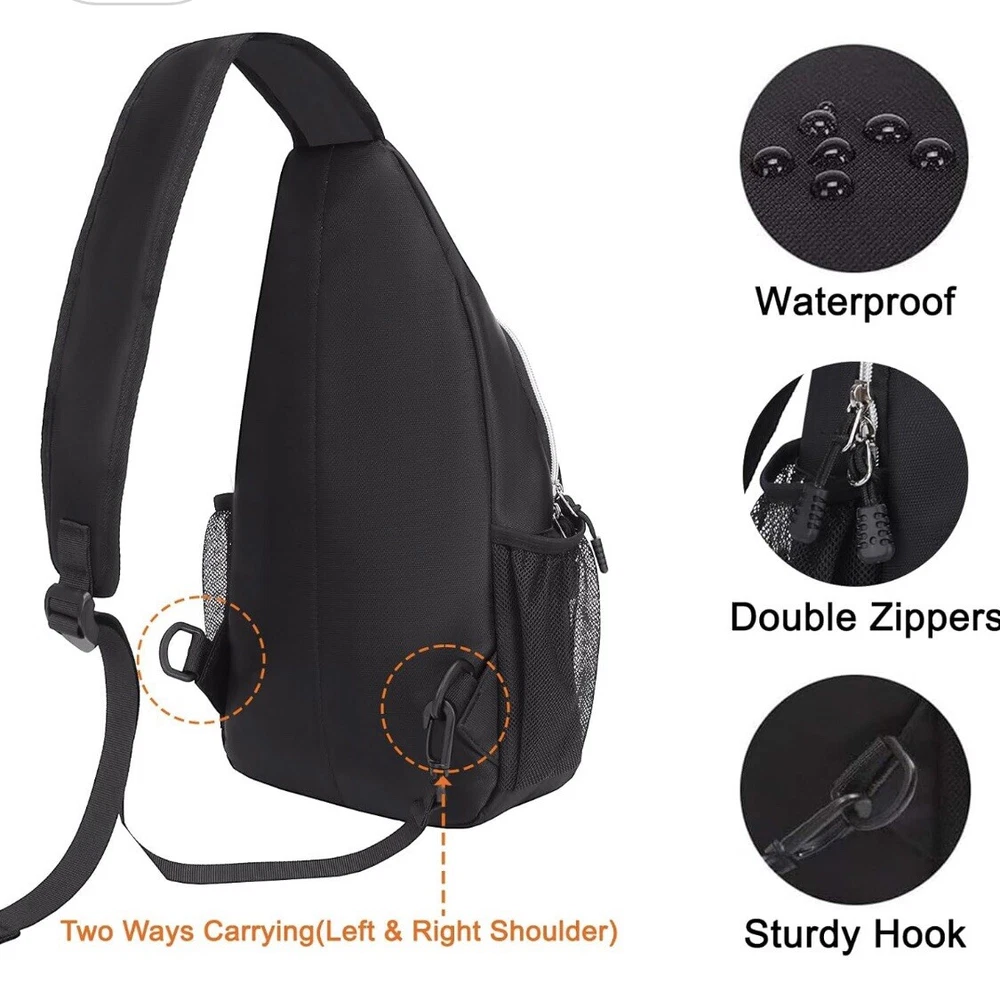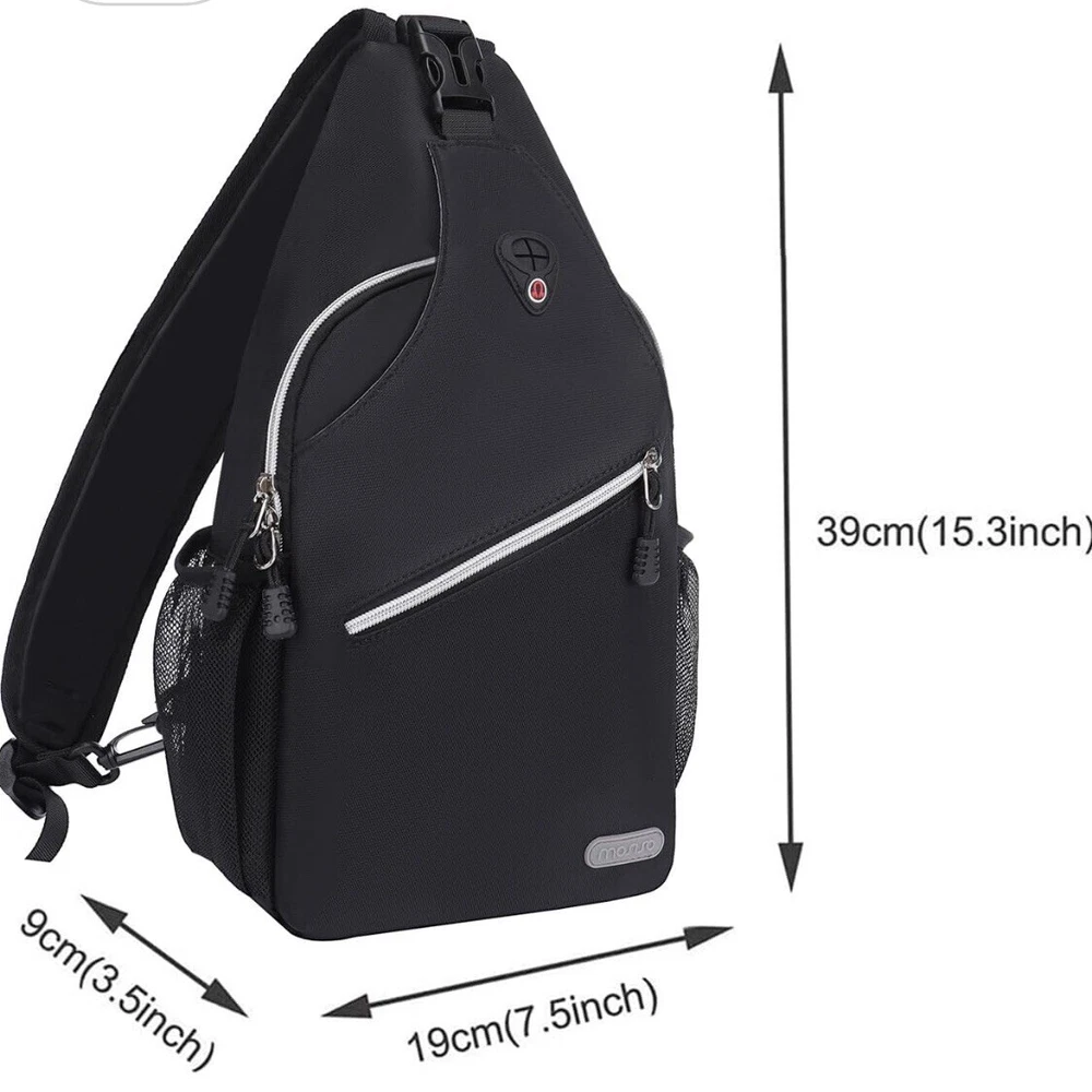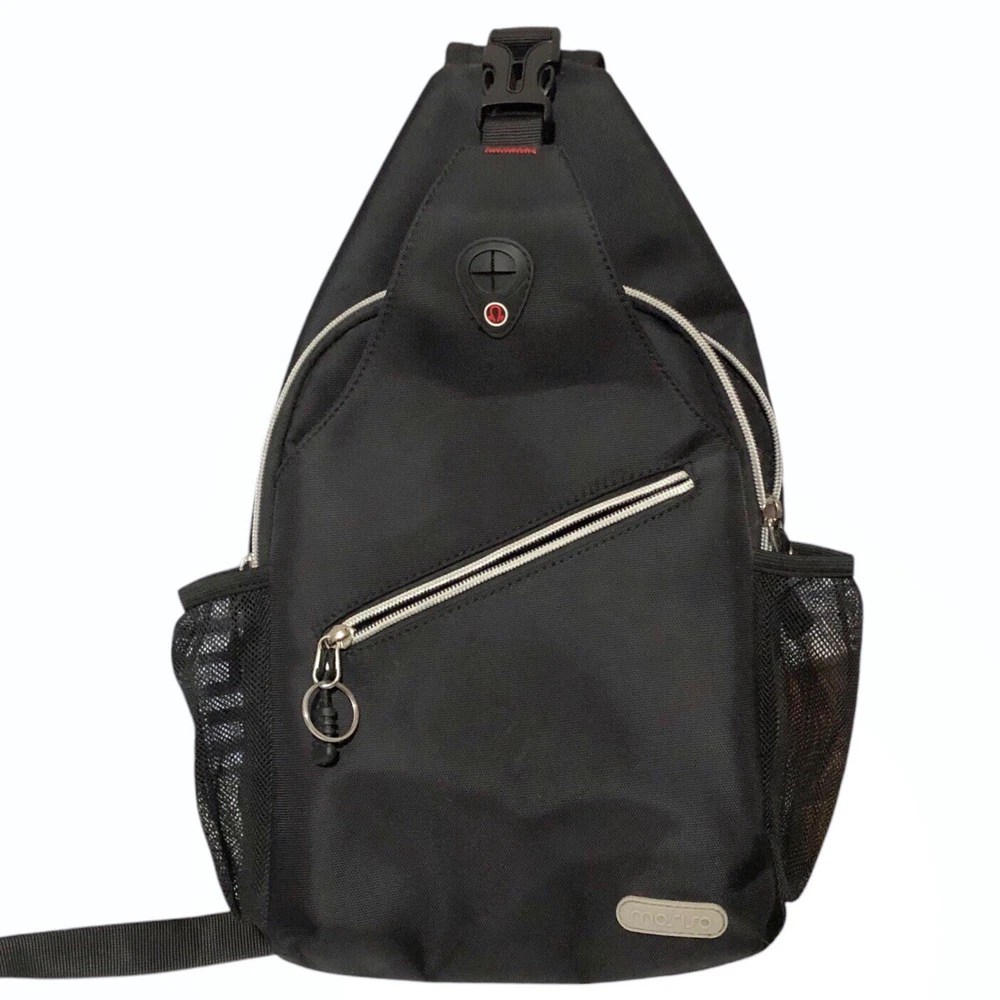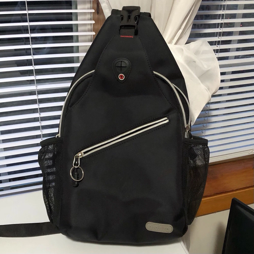 MOSISO Sling Backpack, Multipurpose Crossbody Shoulder Bag Travel Hiking Daypack •Pre-owned excellent condition •Larger zippered compartment comfortably holds tablets •Smaller zippered one is for phones, wallet or outdoor/travel sundries •2 mesh bags in each side for water bottle or umbrella (up to largest diameter 2.5 inch) •Multi-functional storage area, accessory compartment with functional pockets to keep your items •Flexible satchel shoulder strap varied from 18 to maximum 36 inch can be adjusted loose or tight. •Two ways of carrying: left or right •Can be used as messenger bag / shoulder bag / crossbody backpack / casual daypack / sling bag / chest bag/ working or business bag •An earphone hole on the front pocket enables you to enjoy music easily •Lightweight •Made of soft polyester material with gliding smoothly zippers and strap clip, allows you convenient access to your stuff. •Suitable for Women or Men •Suitable for outdoor sports (hiking, cycling, biking, walking, running, camping, climbing), office and business. 💜 🐈 Cat friendly home 🚫 Smoke Free home
