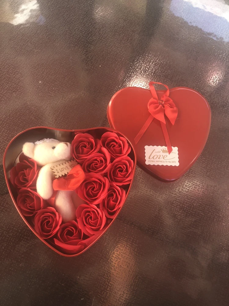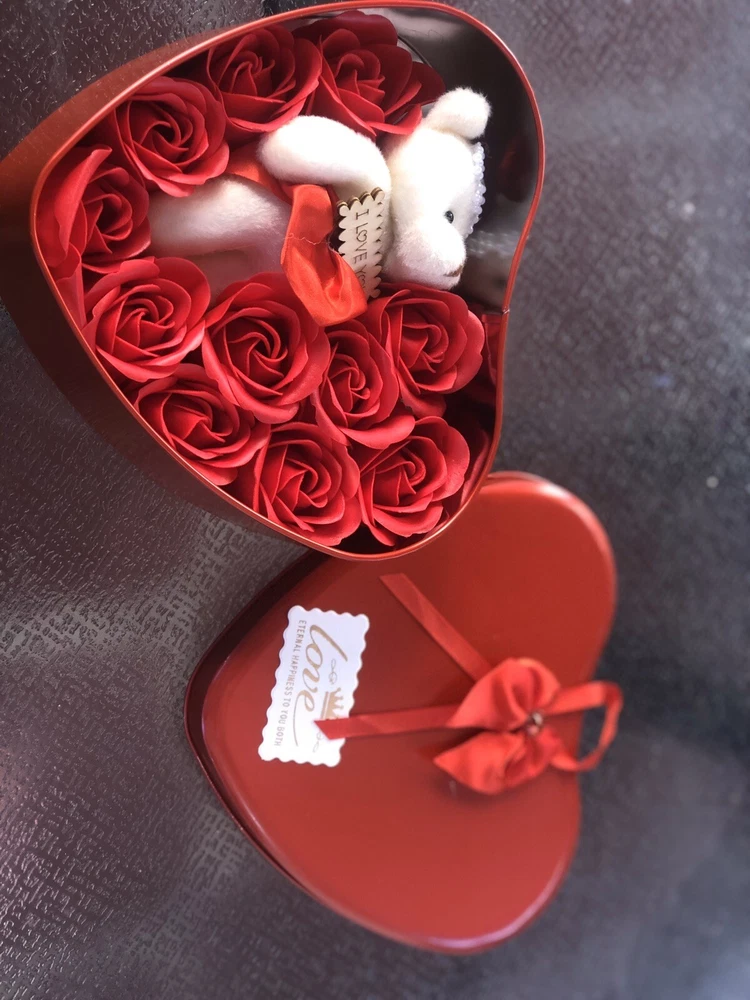 VALENTINE GIFT HEARTH BOX WITH SOAP RED ROSES AND TEDDY BEAR . Condition is New. Shipped with USPS First Class Package. The roses soaps petals (11 soaps roses 🌹)smells awesome, cute little teddy bear , great gift for any especial friend Dimensions: box 7”/ 6” Check my others Valentines Day Gifts Thanks!