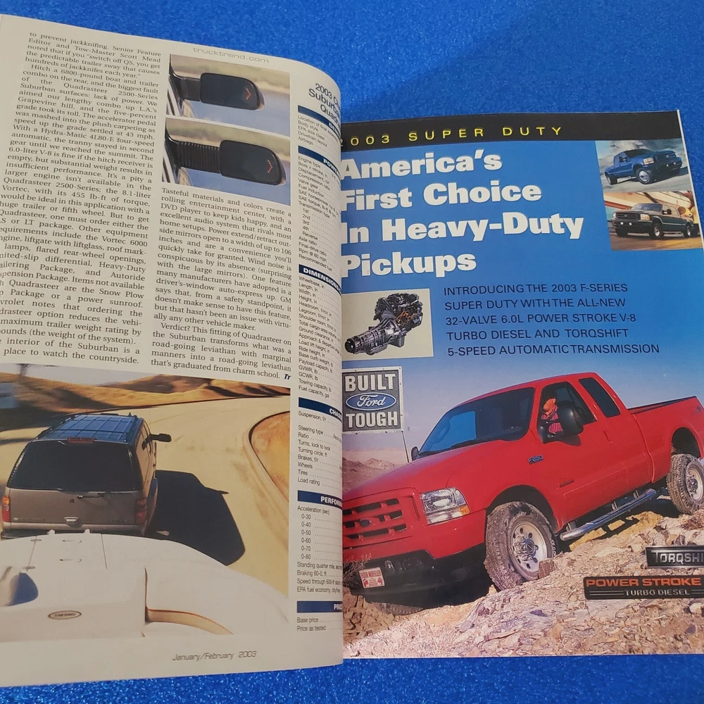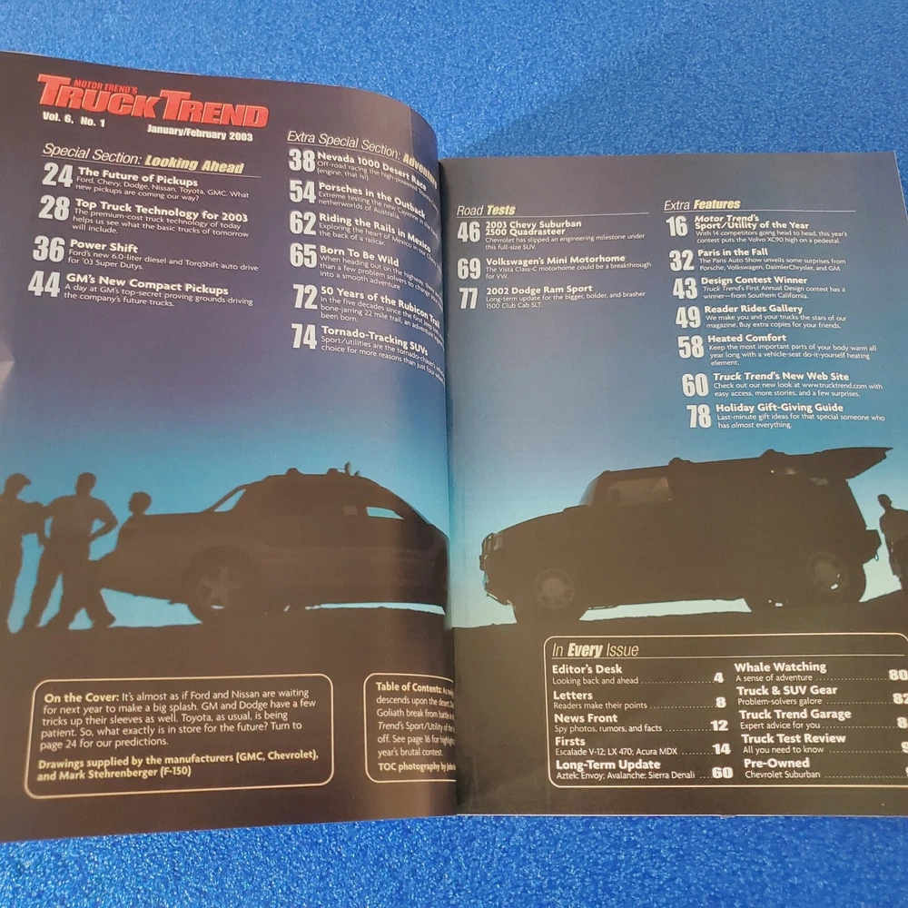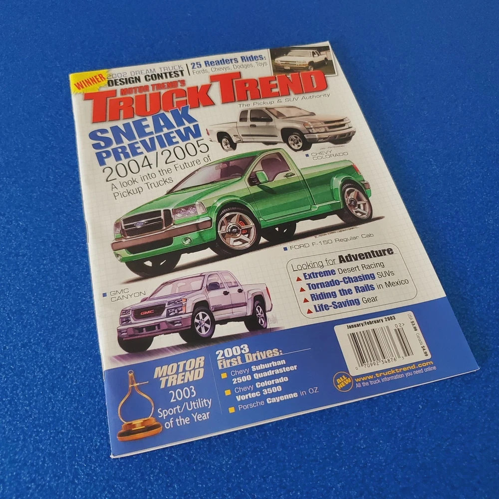 Country/Region of Manufacture: United States Distribution: Paid Circulation Subscription: No Publication Year: 2003 Topic: Antique Cars, Cars, 1960s, Cars, 1970s, Cars, 1980s, Cars, 1990s, Cars, 2000s Publication Frequency: Monthly Genre: Automobiles Contributors: Unknown Volume: unknown Issue Number: unknown Publication Month: February, January Language: English Publication Name: MOTORTREND'S TRUCK TREND SNEAK PREVIEW 2004/2005 Features: Illustrated Signed: No Publisher: MotorTrend