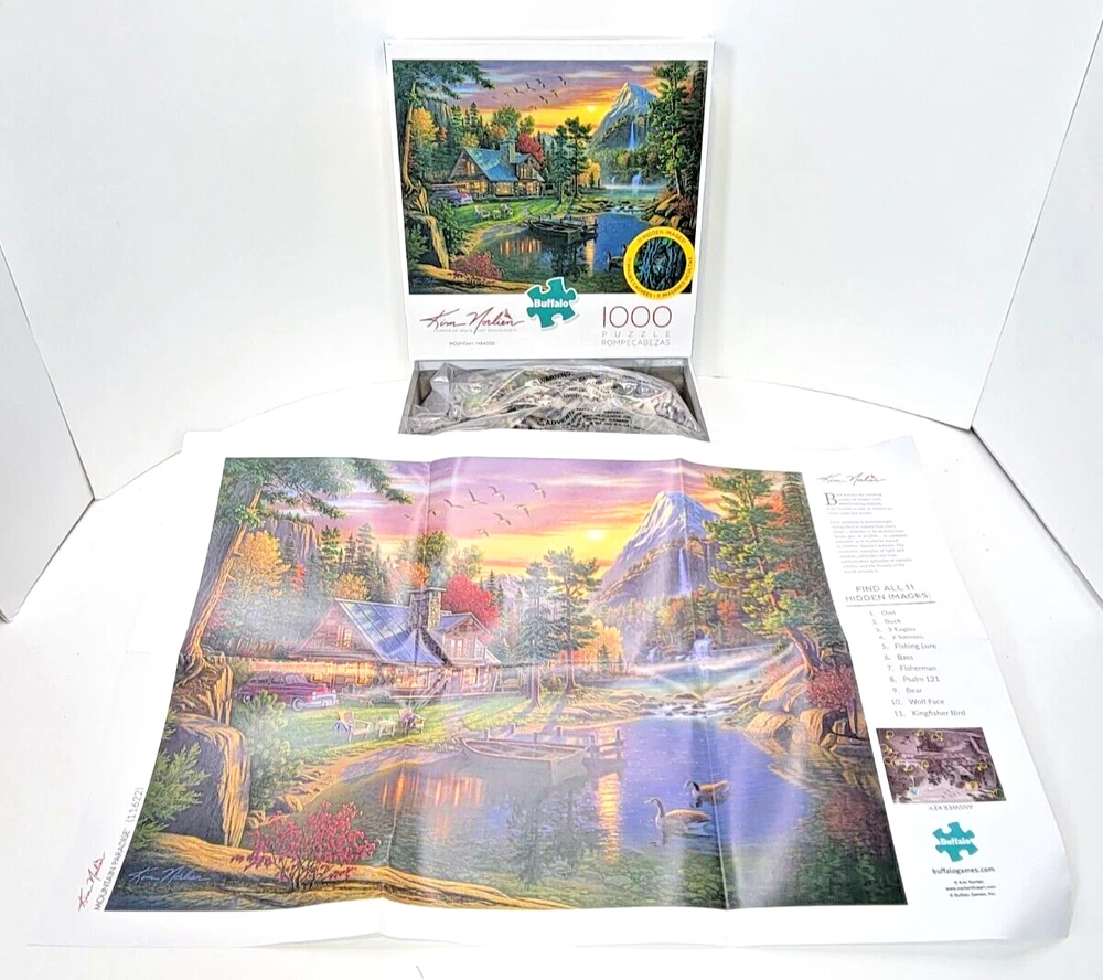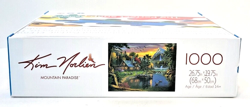 Get ready to enjoy hours of fun with the MOUNTAIN PARADISE Kim Norlien 1000 Pc Jigsaw Puzzle from Buffalo Games. This puzzle is perfect for puzzle enthusiasts and anyone looking for a challenging and relaxing activity. With a size of 26.75" x 19.75", this puzzle features a beautiful landscape theme that is sure to keep you engaged. The puzzle is made of high-quality cardboard material and comes with \"The Perfect Snap\" pieces that fit together seamlessly. Additionally, it includes a reference poster that will help you put the puzzle together faster. The puzzle is recommended for ages 14+, and it is suitable for both boys and girls. It is made in the United States and is perfect for anyone who loves jigsaw puzzles. We did not work the puzzle or count the pieces, but we verify the number count at your request . Each item we ship is carefully packaged to prevent any damage and is shipped immediately with tracking.
