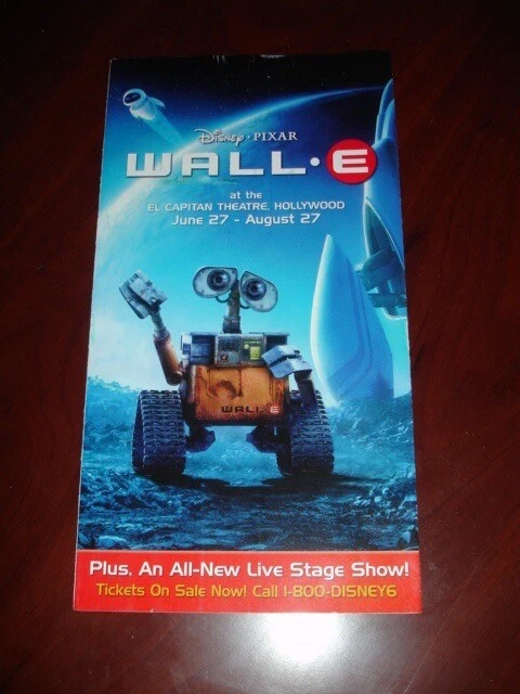 MOVIE MEMORABILIA Wall E Pixar Walt Disney Advertisement Theatre MOVIE MEMORABILIA Wall E Pixar Walt Disney Advertisement Theatre Original Ad from when Wall-E was being released ORIGINAL Really Cool & Really Awesome! We are very proud of our service and the quality of our items. See our over 8,600+ unique positive feedbacks for a reflection of our service and items. EVERYTHING WE SELL ARE ORIGINAL ITEMS! In other words ... nothing we sell is made by us, home made or counterfeit in any way, shape or form! All items are authentic and sold under the first sale doctrine, which meets and exceeds all laws and regulations under U.S. law, so bid with confidence. All from a personal and legally bought and/or obtained personal collection. If you have any questions or concerns, please ask them before bidding. You are not bothering us by asking us questions at all. A lot of the items we offer will never be offered again or at this price! The price can go up if the item gets popular and has no bids but has a lot of eyes. So it's best that you take advantage of the price and lock it in now by bidding or buying it now. We do combine shipping charges on many categories like multiple action figures or multiple trading cards. Check the listing description to make sure what's up but we always try to combine shipping costs to save you money! Ask us too via messaging. We can tell you about combined shipping or make a special listing just for you that will have a combined shipping charge. We do run some great promotions and/or coupons from time to time! So please add our store to your favorites so we can send you deals and coupons! If you see an item with "Make Offer", send us an offer, we will entertain it. We are a USA born/owned and operated store. Everything ships from within the USA. Everything comes from a smoke-free and pet-free enviroment. Everything is handled with care and professionalism. We ship everything as if we are buying it for ourselves i.e. how we want our items to arrive. We take great care in packaging your item. Thanks for supporting American sellers like us! Be safe and be well. BId or Buy It Now Before It's Gone!