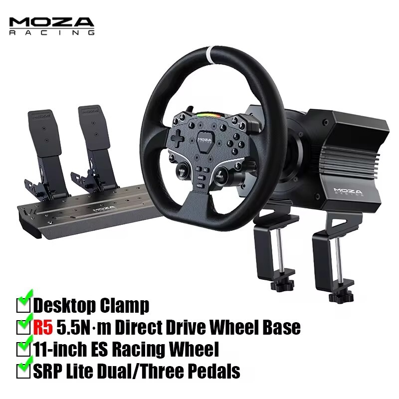 MOZA Racing R5 Bundle Kit Racing Simulator game Steering Wheel Pressure Pedal Description: 5.5 Nm of Torque from Direct Drive Power Aeroplane Grade Aluminum / Hand-made Stitch Leather / High-Strength Steel Ultra-high Power Density Servo Motor Customized Quick Release from Real Racing 22 Programmable Buttons Adjustable Spacing and Height Mapping Pedal Output Curves MOZA Pit House Control Software APP Cloud Control Included R5 Table Clamp R5 Wheel Base x1 ES Steering Wheel x1 SR-P Lite Pedals (Without Clutch) x1 R5 Table Clamp 15 Degree Desktop Mounting Clip Power Supply Power Cable USB Cable M4*10 Socket Screws x12 M6*20 Socket Head Screws x2 M8 Nuts x3 M6x12 Socket Head Screws x4 Pedal Fixed Rubber Columns x2 2.5mm Hexagonal Wrench x1 7mm Open End Wrench x1 5mm Hexagonal Wrench x1 Type A to Type B USB Cable x1 M8*12 Hexagonal Screws x3 What's Inbox: Payment Delivery details Terms of sales About us Contact us Payment Warning : every international Order will have inport Tax problem with Customs ,Please clear customs by buyer,we will lower the declare price on invoice Please do not open the Return directly ,any order problem You can send message to us first ,we will solve it very fast ,thank you 1.We accept payment via T/T, PayPal for USD dollars .Alipay and Wechat payment for RMB 2.We will deliver your goods within 20days after payment. 3.We will pack the goods well with exporting packages and bubble wrap to make sure all goods in a good condition during storage and delivery. 4.We usually use express delivery like DHL, UPS, FedEx, TNT and EMS, as we enjoy perfect discount in these companies. 5.We have well-trained and professional sales & after-sale services persons who can speak English fluently. Delivery details Each international package will have inport Tax problem with Customs ,Please clear customs by buyer Terms of sales 100% Official and official product About us China mainland super top seller wholesale company about video studio photography Camera equipment cargo .100% brand original and official Contact us Please send ebay message for asking product , we will reply you in 24 hours ,thank you